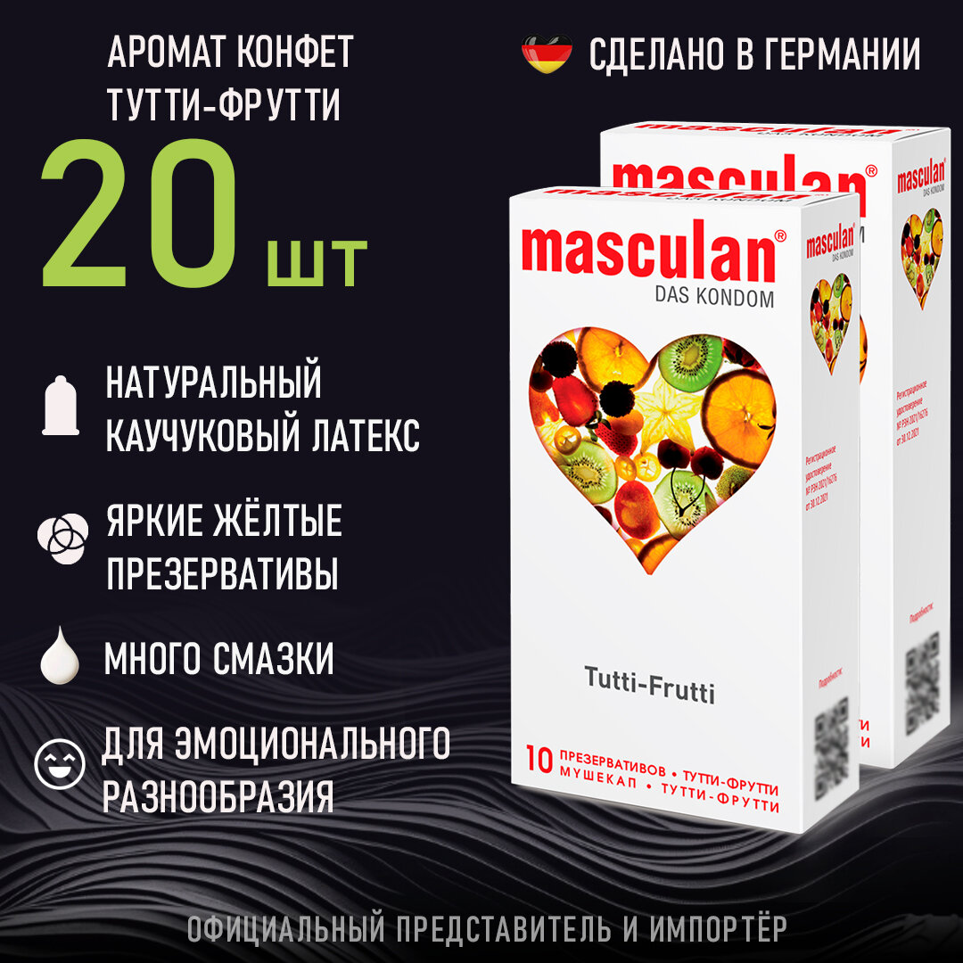 Презервативы Masculan Tutti-Frutti №10, 2 упаковки (20 презервативов, тутти-фрутти) интересное: