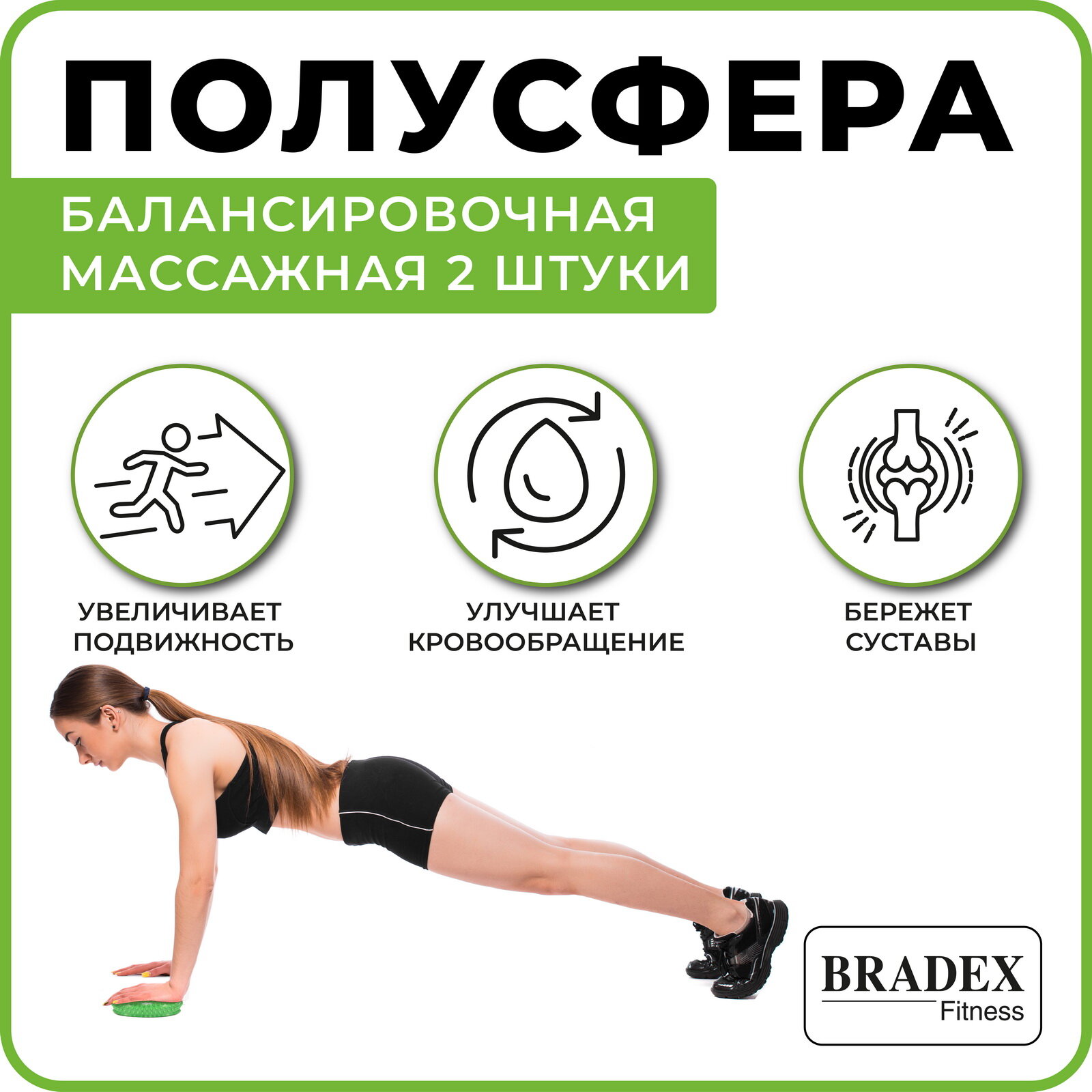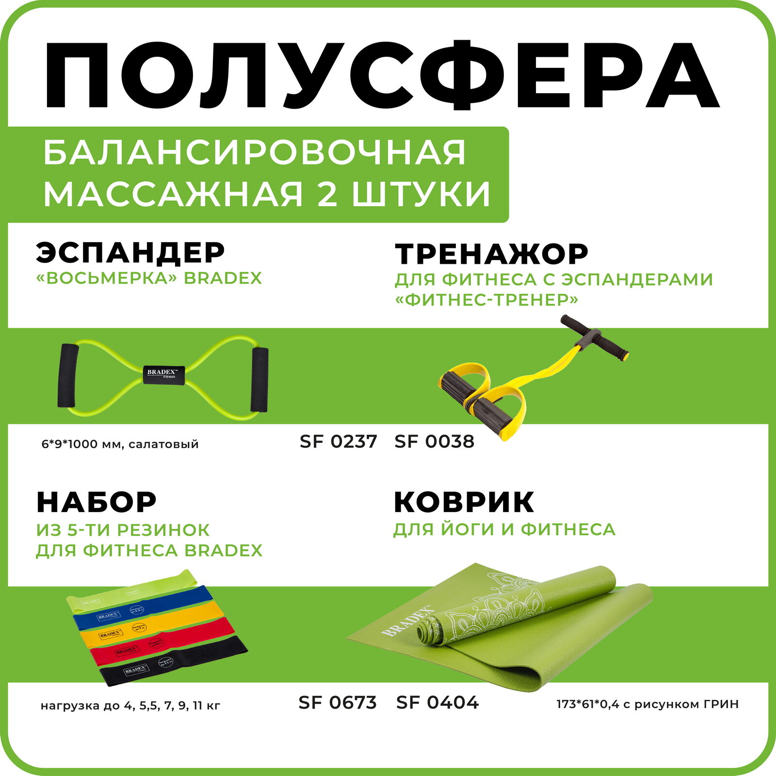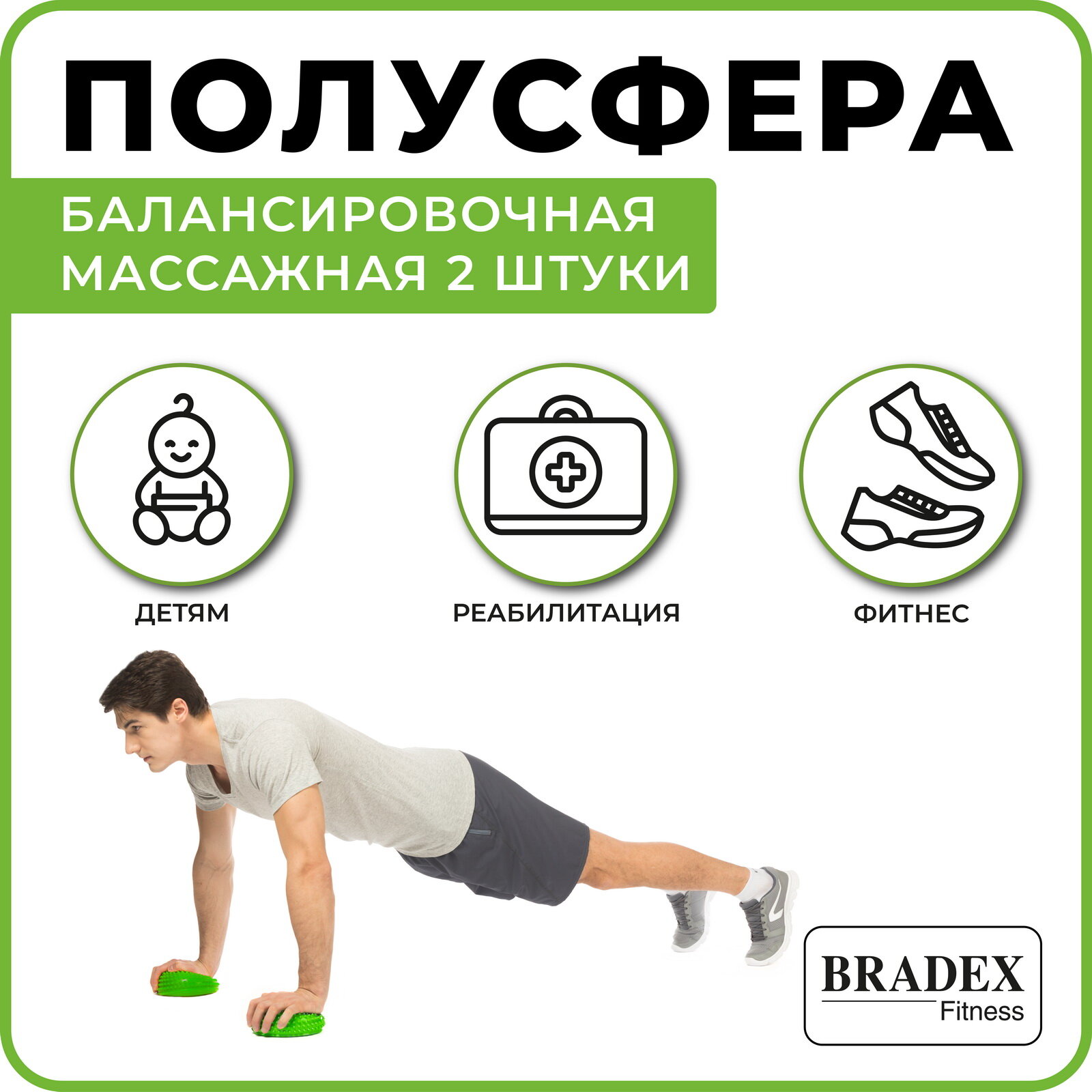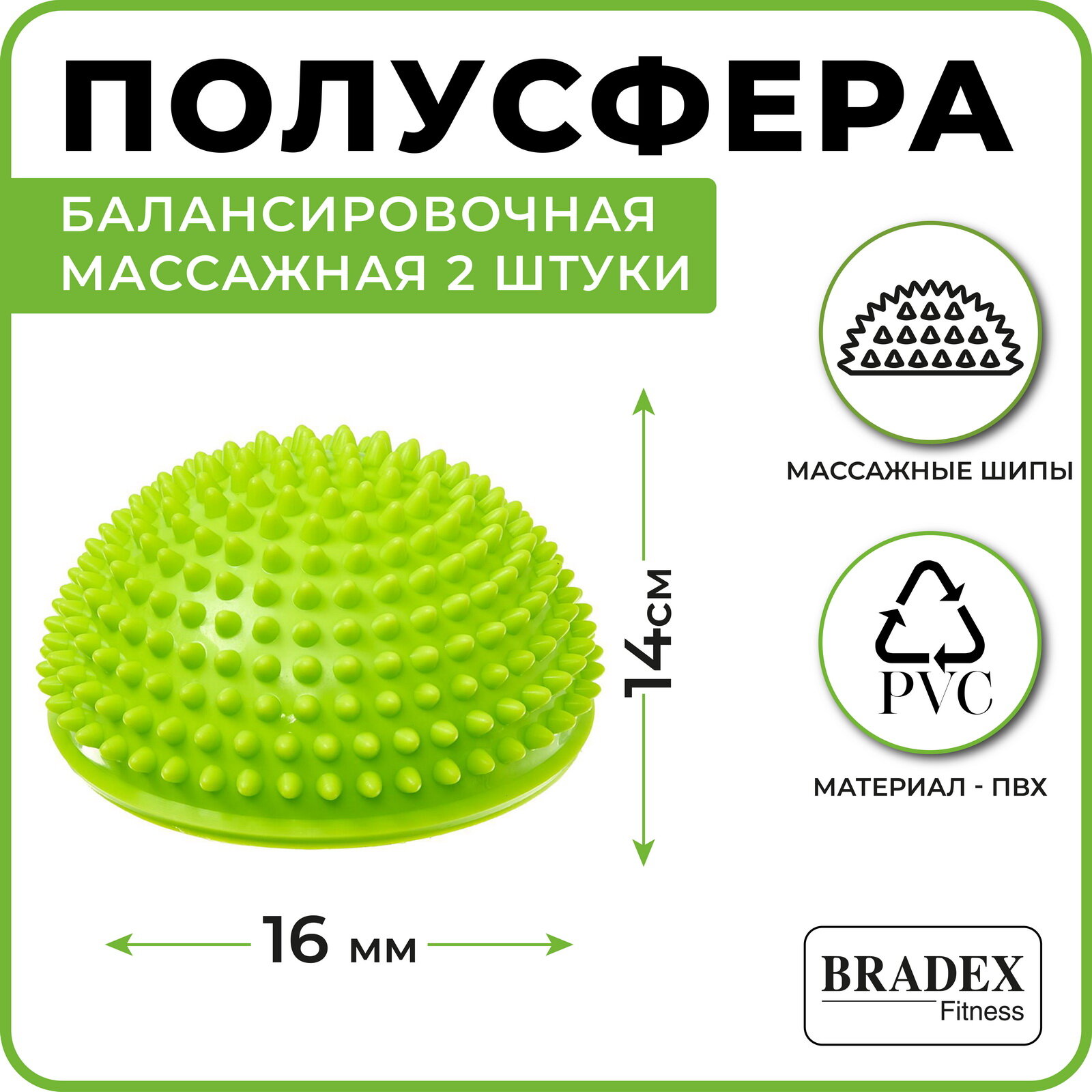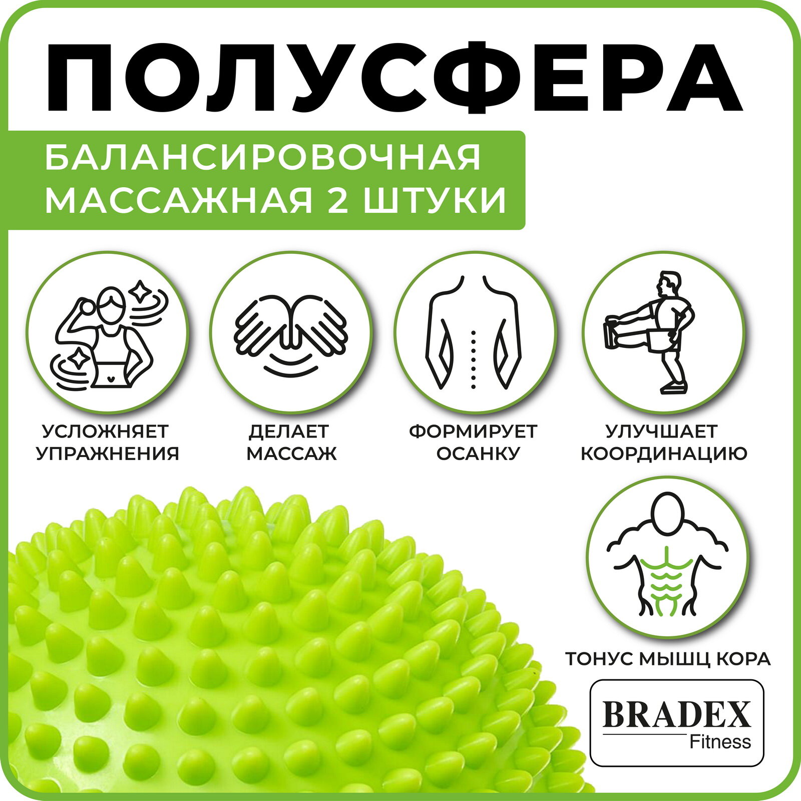 Набор полусфер Bradex балансировочных массажных 2 шт, зеленый (16 см диаметр) интересное: