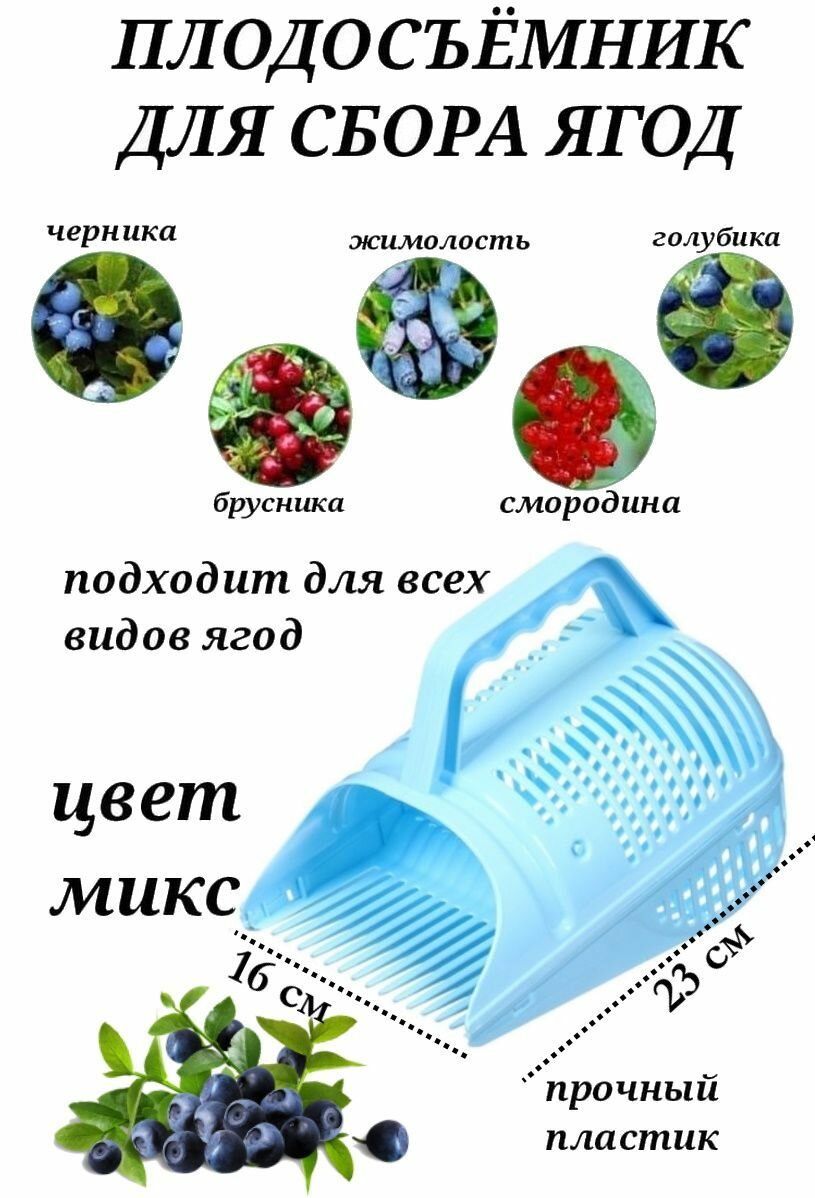 Плодосъемник для ягод голубой Сим, комбайн для сбора фруктов пластиковый, плодосборник с заслонкой интересное: