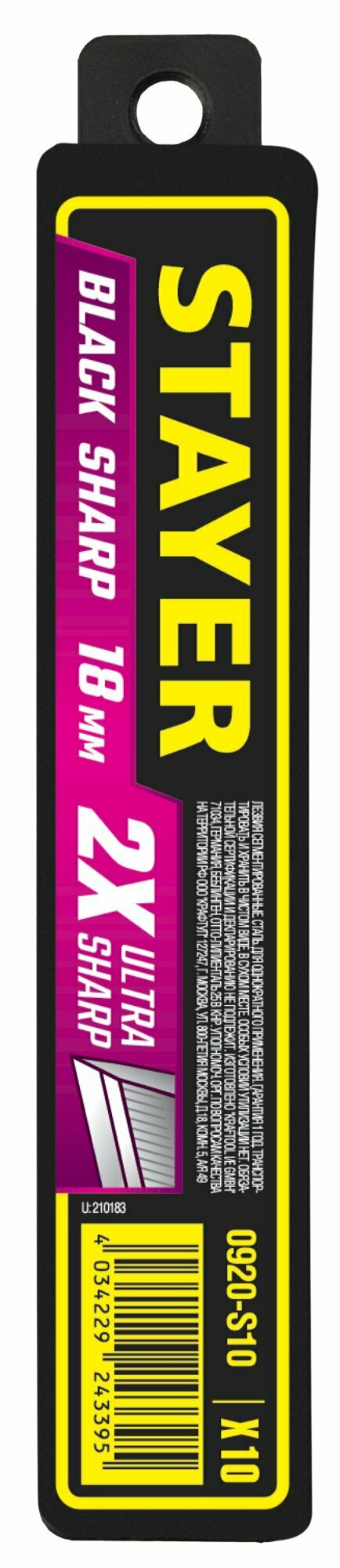 STAYER 18 мм, 10 шт, сегментированные черные особоострые лезвия (0920-S10) (0920-S10) интересное: