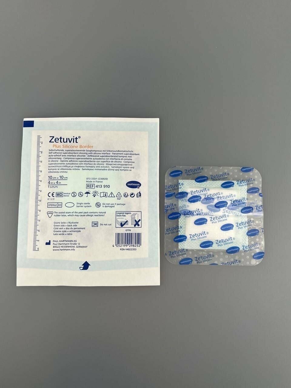 Купить Zetuvit Plus Silicone Border Повязка пластырь силиконовая суперабсорбирующая самоклеящаяся на рану 10х10см для лечения язв, пролежней и ожогов - 2 шт