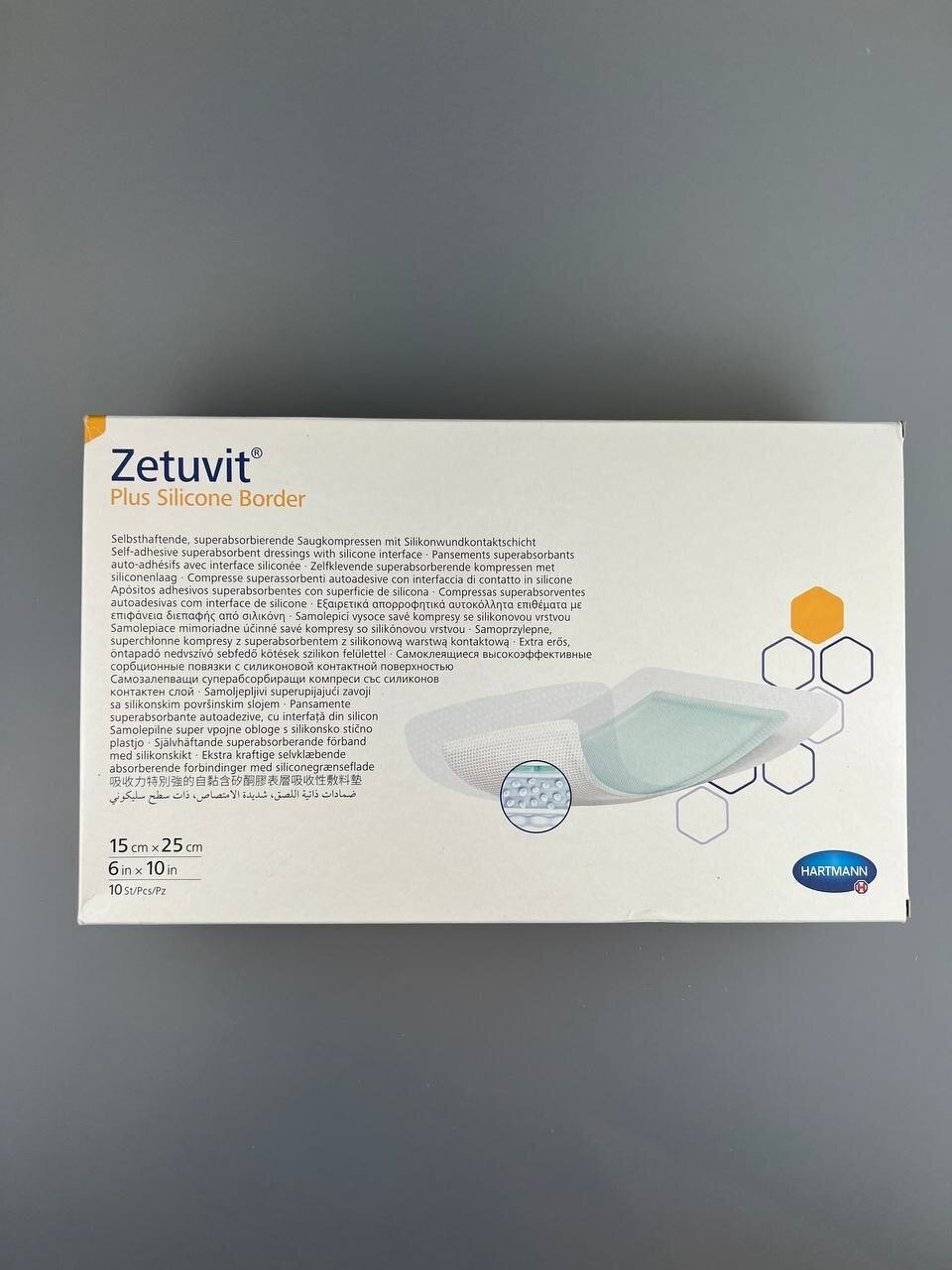Hartmann Zetuvit Plus Silicone, повязка стерильная суперабсорбирующая 10 х 20 см, 10 шт.