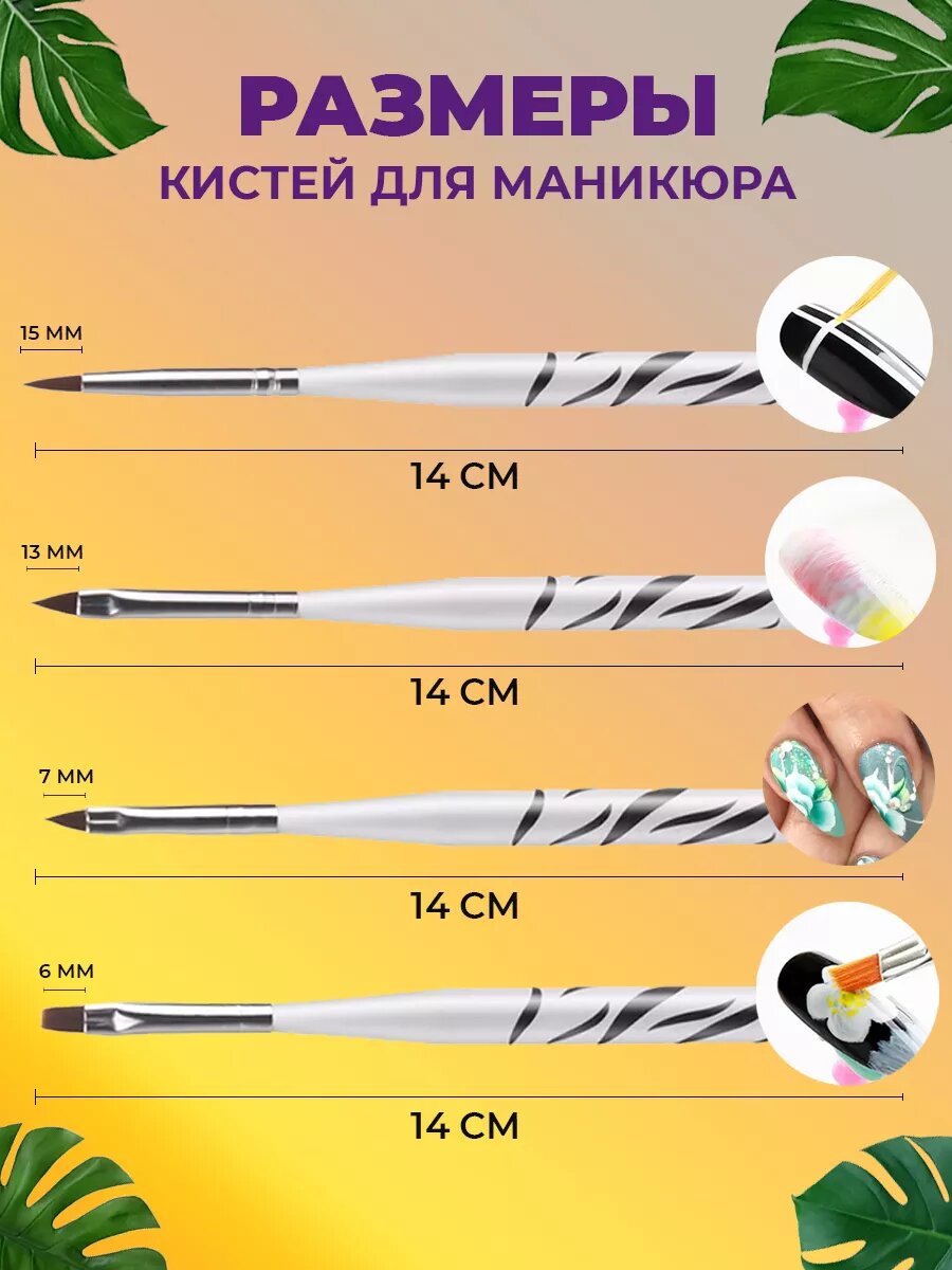 Кисть для дизайна и наращивания ногтей, прямая, плоская, 17,5 см, d - 0,5 см, цвет белый(4 шт.)