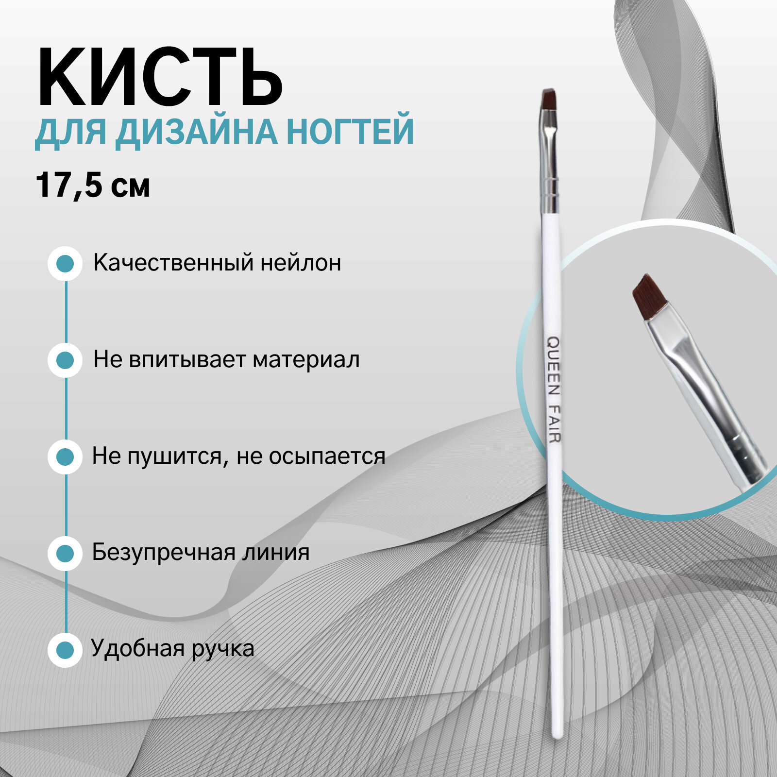 Кисть для наращивания и дизайна ногтей, скошенная, 17,5 см, d=5 × 4 мм, цвет белый 1шт. интересное:
