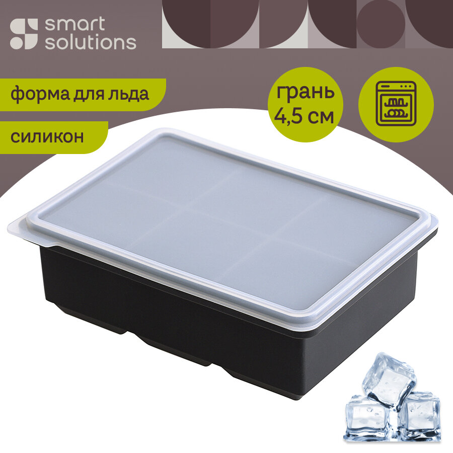 Форма для льда с крышкой Ice cubes большая силиконовая 6 ячеек Smart Solutions SS000086 интересное:
