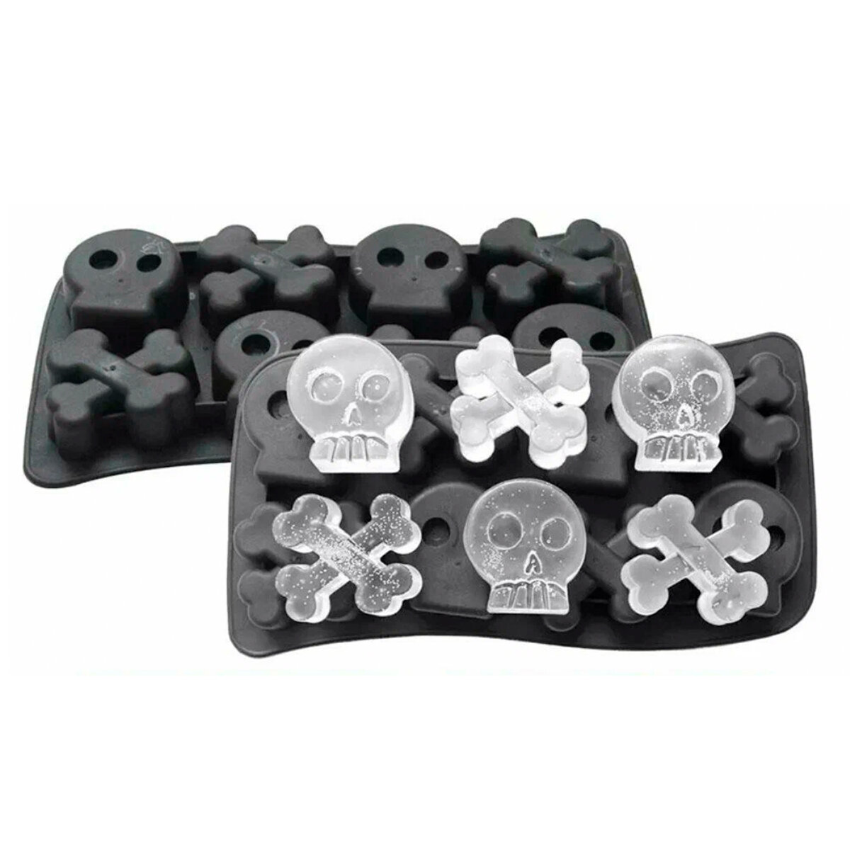 Форма для льда / шоколада / Формочка для конфет "Кости и черепа" (8 кубиков) (Чёрная) интересное: