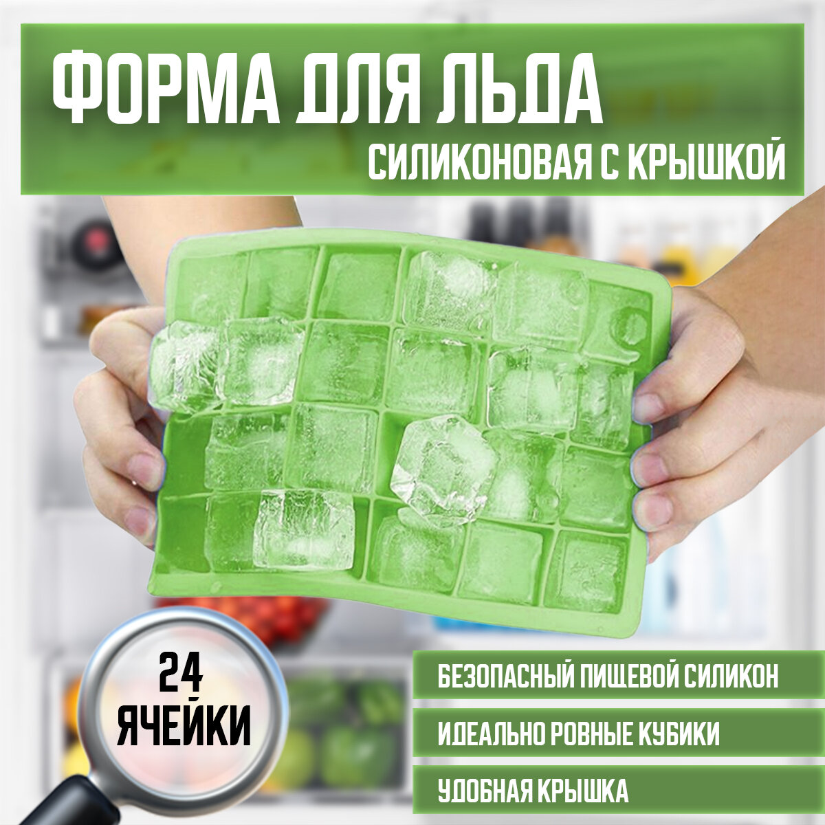 Форма для льда с крышкой, силиконовая форма для льда, 24 ячейки, зеленая интересное: