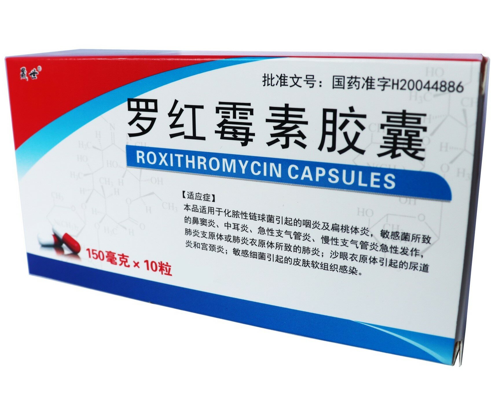 Купить Рокситромицин при фарингите и тонзиллите, синусите, бронхите Roxithromycin 罗红霉素胶囊 (ТКМ)