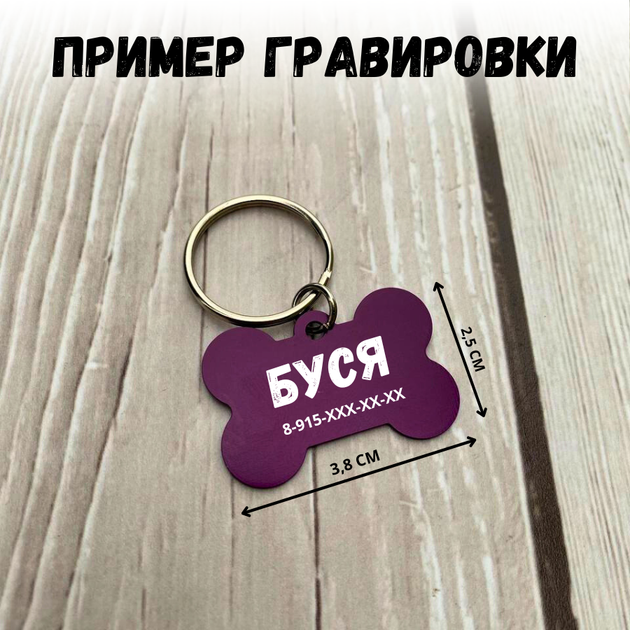 Купить Адресник фиолетовый для питомцев с гравировкой имени и номера телефона