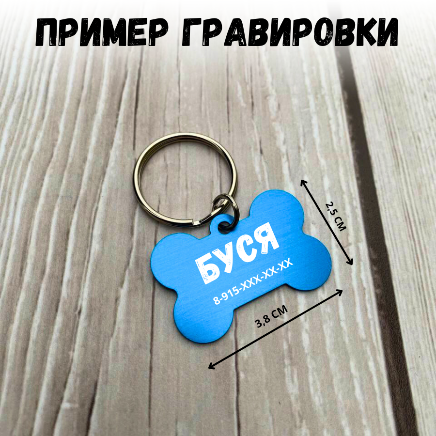 Адресник синий для питомцев с гравировкой