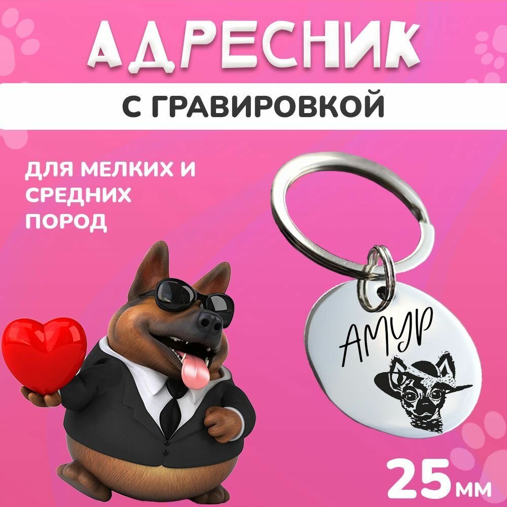Адресник с гравировкой с дизайном породы для мелких собак 25мм, Обормот интересное: