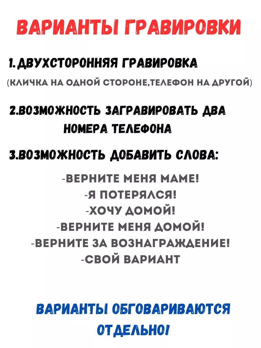 Ниже Вы можете прочитать отзывы на Адресник с ошейником и звенящим шариком, ознакомится с подробными характеристиками, посмотреть интересные обзоры и фотографии на Адресник с ошейником и звенящим шариком.