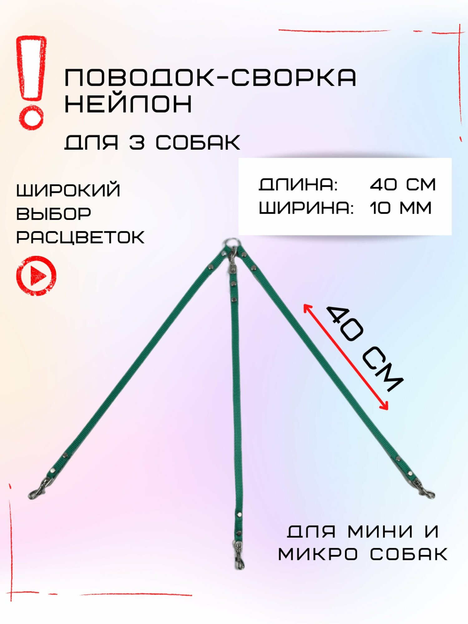 Сворка Хвостатыч для трех собак маленьких пород нейлон 40 х 10 мм (зелено-красный)