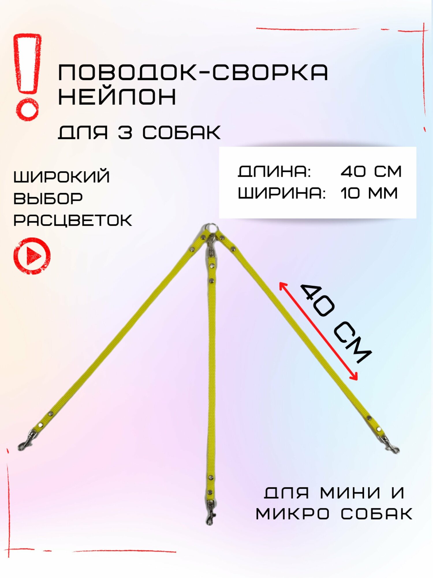 СохранитьСворка Хвостатыч для трех собак маленьких пород нейлон 40х10 мм (Желтый) интересное: