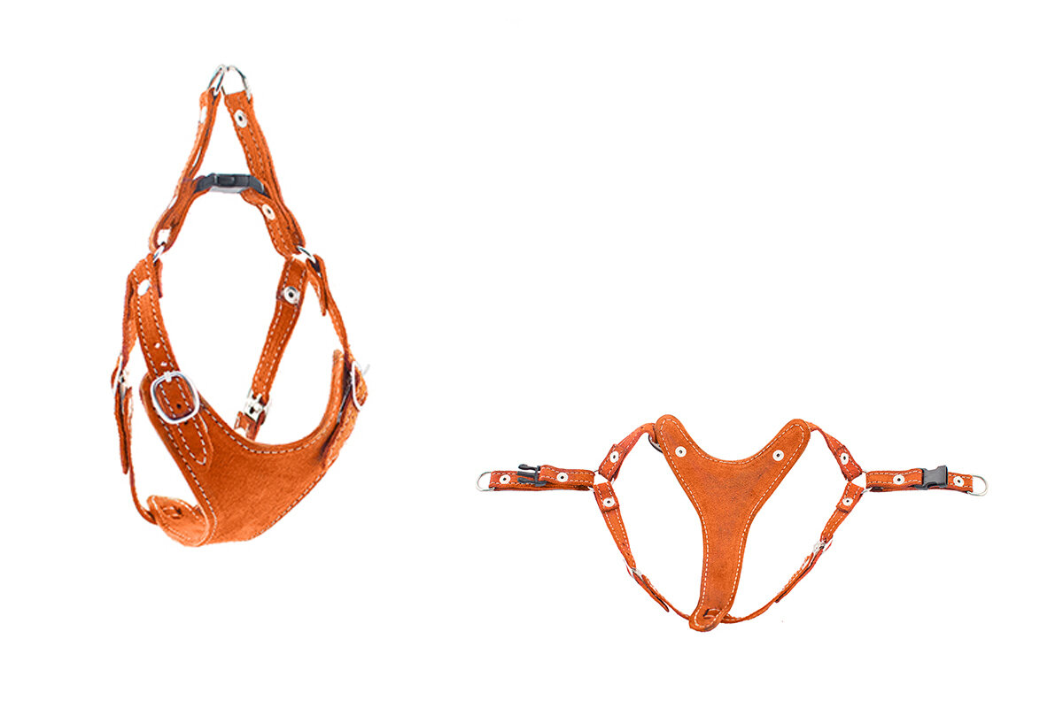 Шлейка замша быстросъёмная Ева S (обхват шеи 20-28см, обхват груди 30-40см), рыжая интересное:
