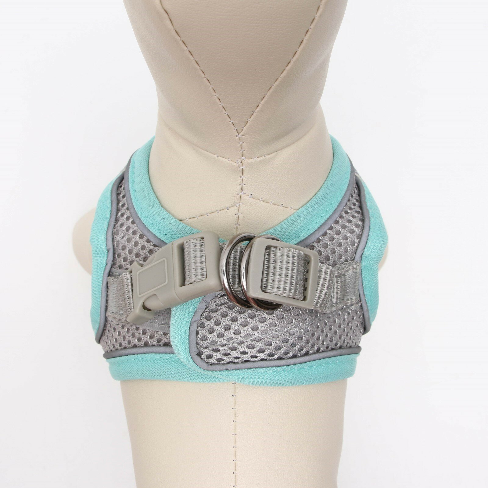 Комплект с мягкой шлейкой, размер XXS, поводок 150 х 1,5 см, ОГ 28-30 см, ОШ 24-26 см, бирюз