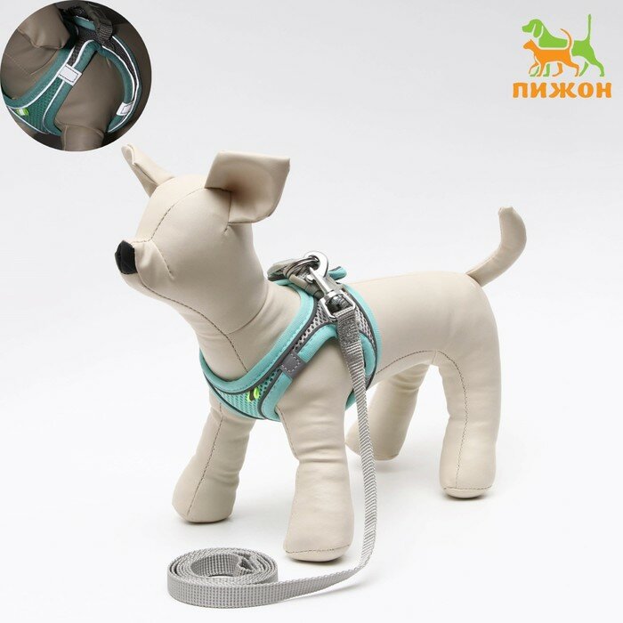 Купить Комплект амуниции с мягкой шлейкой быстросъемный, XXS поводок 120 см, бирюзовый/серый Пижон 9163278 .