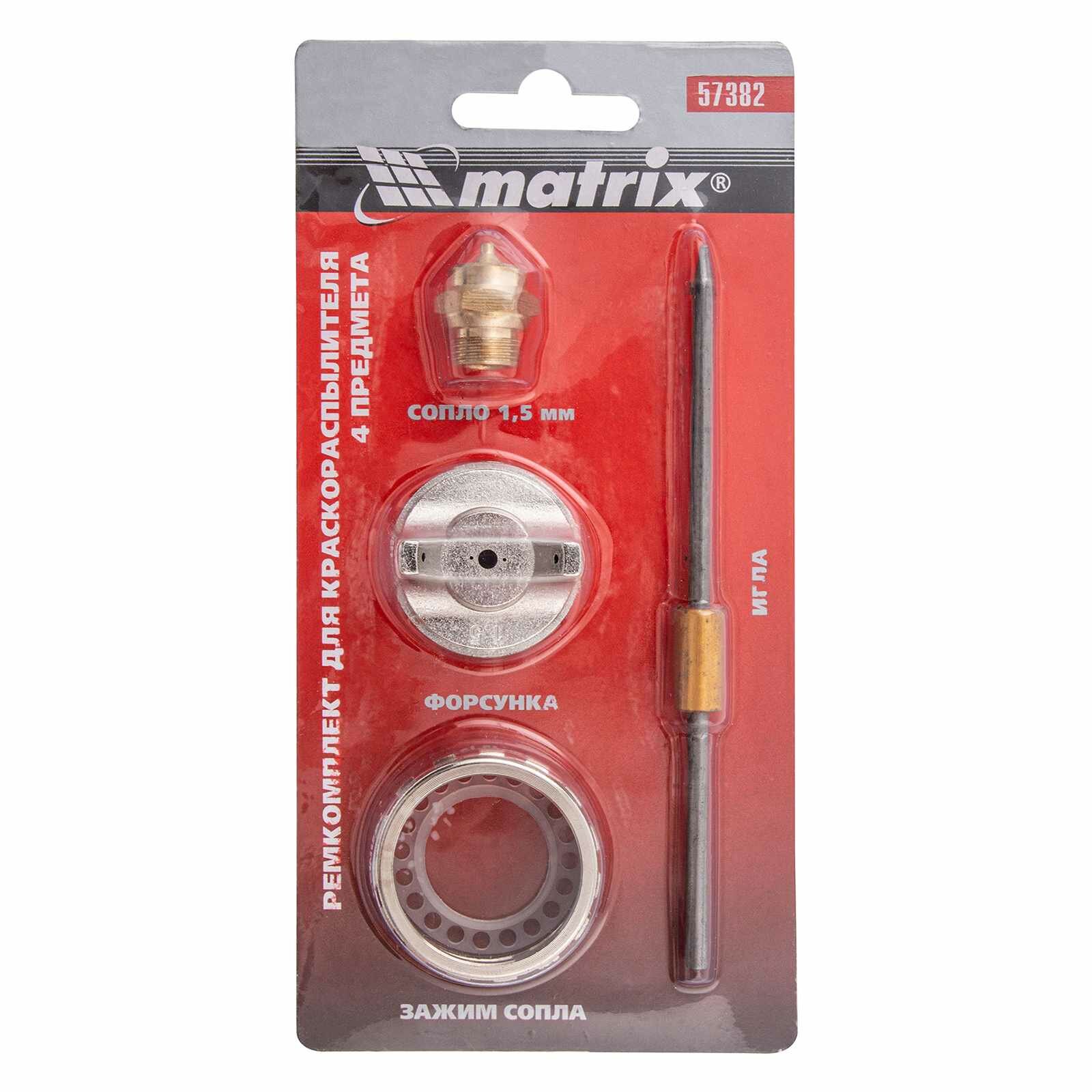 Ремкомплект для краскораспылителя 4 предмета : сопло 1,5 мм + игла + форсунка + зажим сопла MATRIX 57382 интересное: