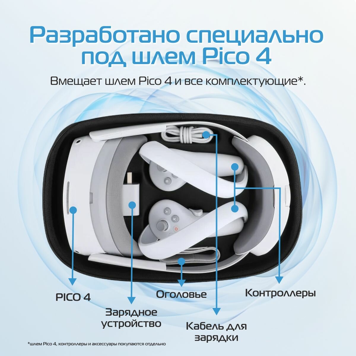 Жёсткий кейс для переноски VR шлема Pico 4 интересное: