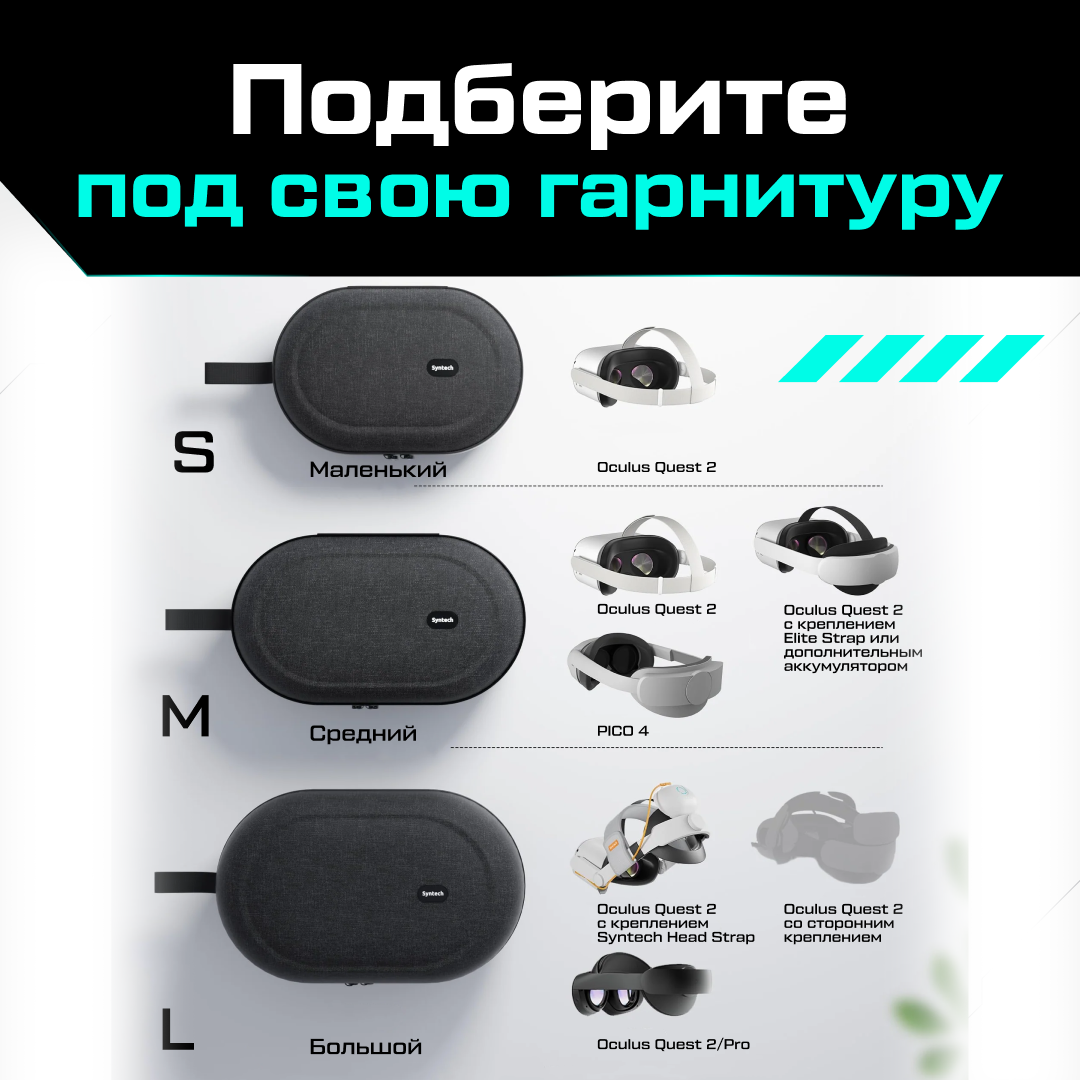 Кейс чехол для Oculus Quest 2/3 PICO 4 / Apple Vision Pro Syntech Hard Carrying Case L серый интересное: