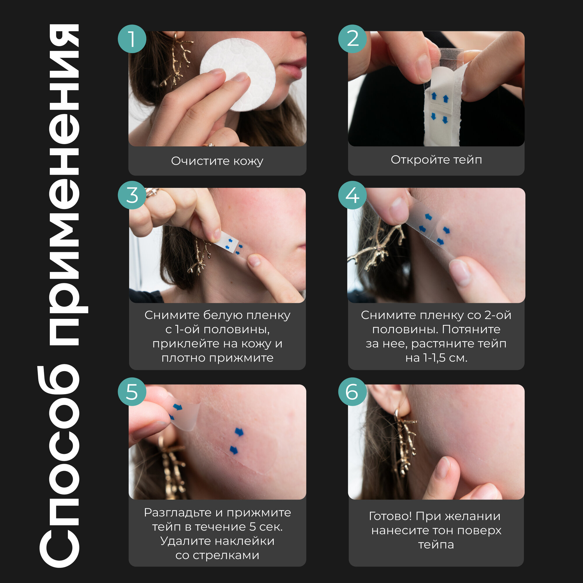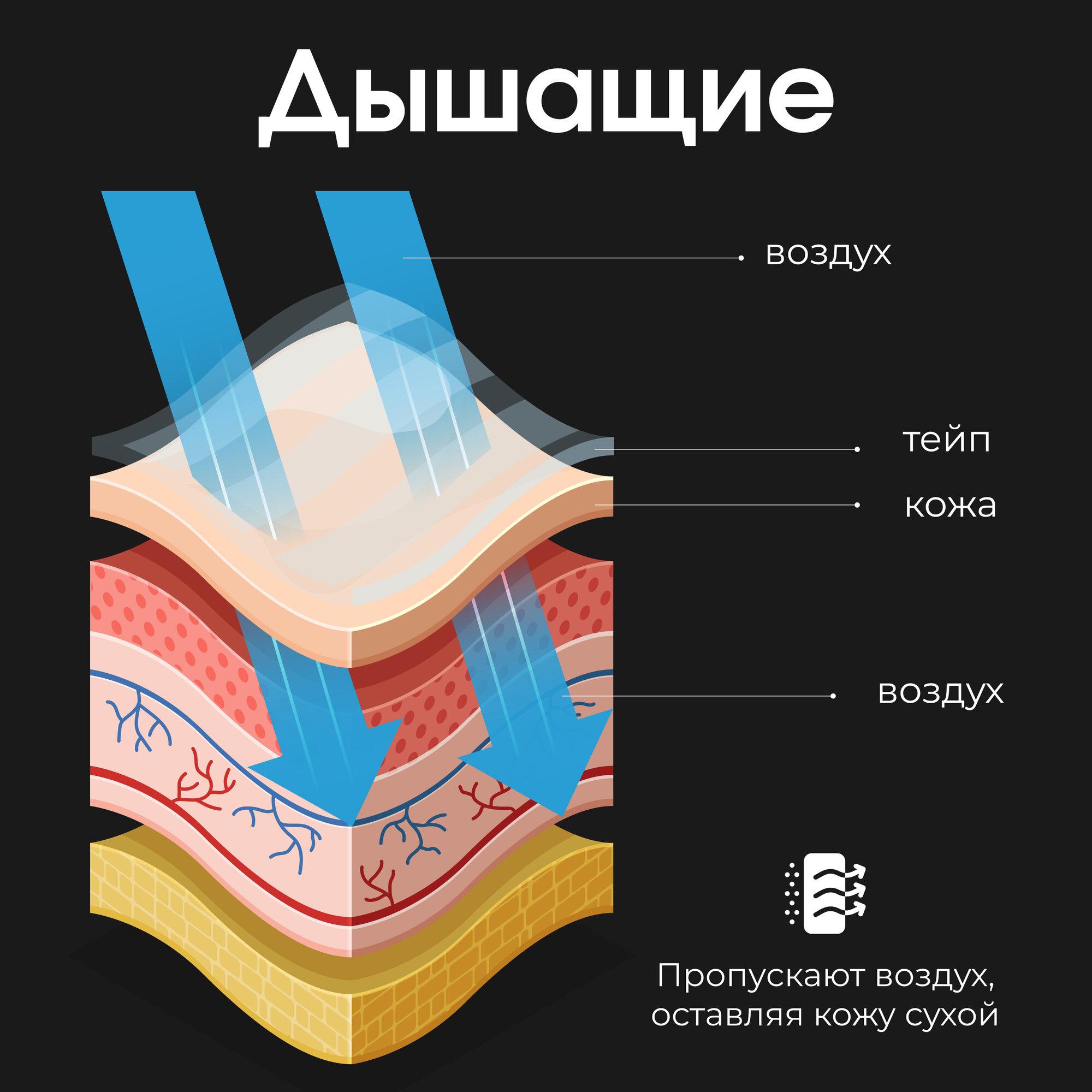 | Дополнительная информация | · Способ применения: 1.Тщательно очистите кожу 2.Снимите белую пленку с первой половины тейпа, прклейте на кожу и плотно прижмите 3.Снимите пленку со второй половины тейпа, растяните его на 1-1,5 см. 4.Разгладьте и прижмите тейп к коже на 5 секунд 5.Удалите наклейки со стрелками |