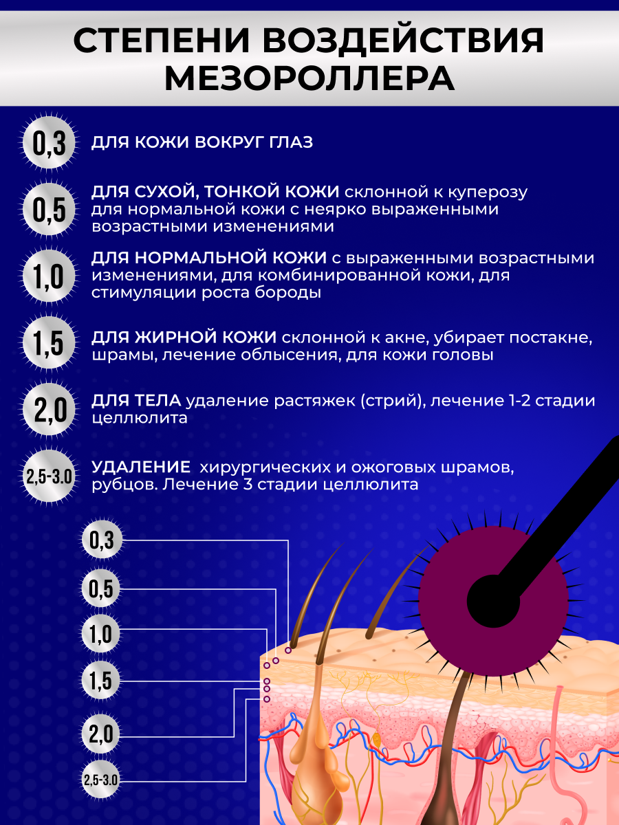 | Комплектация | мезороллер - 1 шт.; бокс-шапочка - 1 шт.; стерильный тубус- 1шт. |