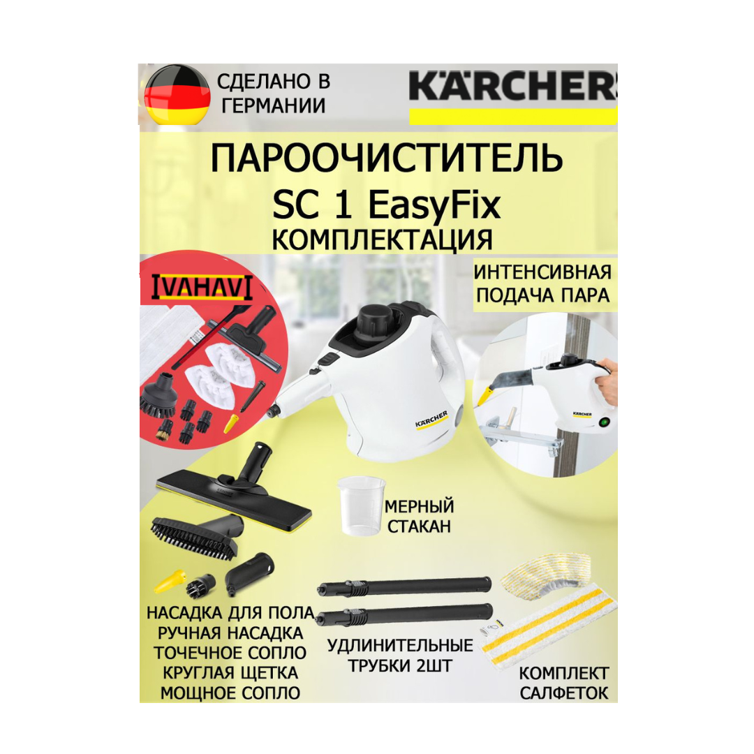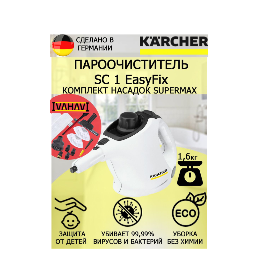 Пароочиститель Karcher SC 1 EasyFix SuperMax белый +12 насадок интересное: