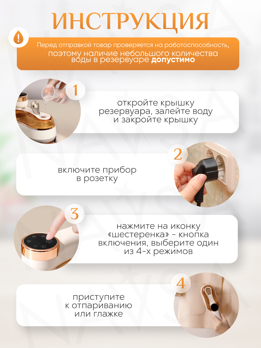 Отпариватель ручной для одежды вертикальный и горизонтальный NAVISA мощный, дорожный мини утюг бежевый