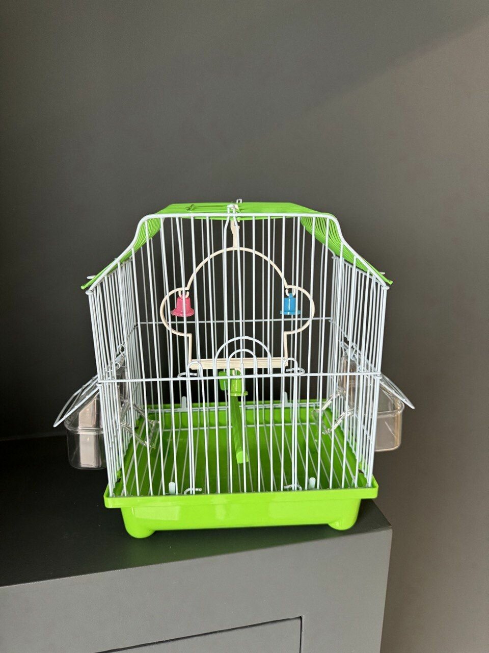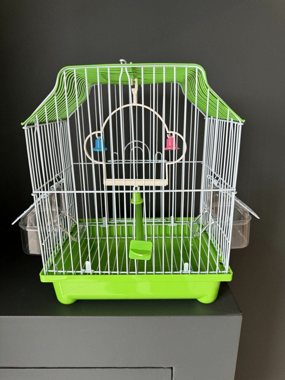 Купить Клетка для птиц 22.5х17х28 см., фальшдно, две поилки-кормушки, жердочка, качели, зеленый