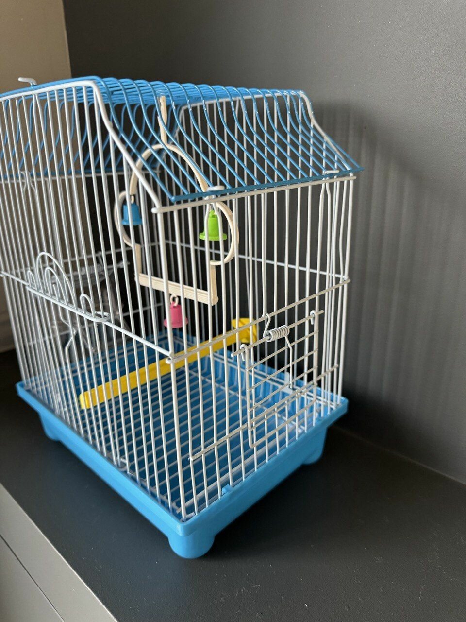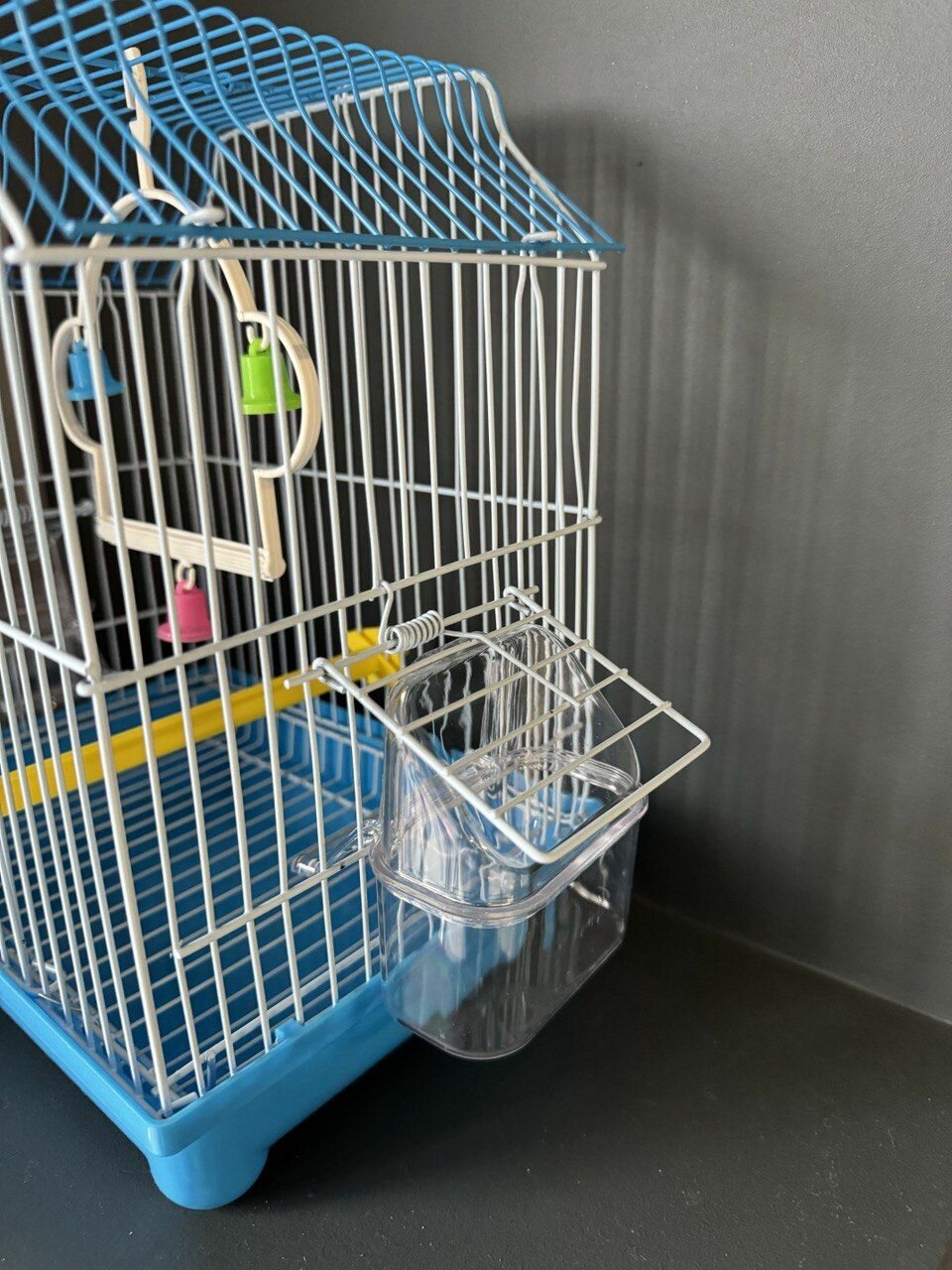 Купить Клетка для птиц 22.5х17х28 см., фальшдно, две поилки-кормушки, жердочка, качели, голубой