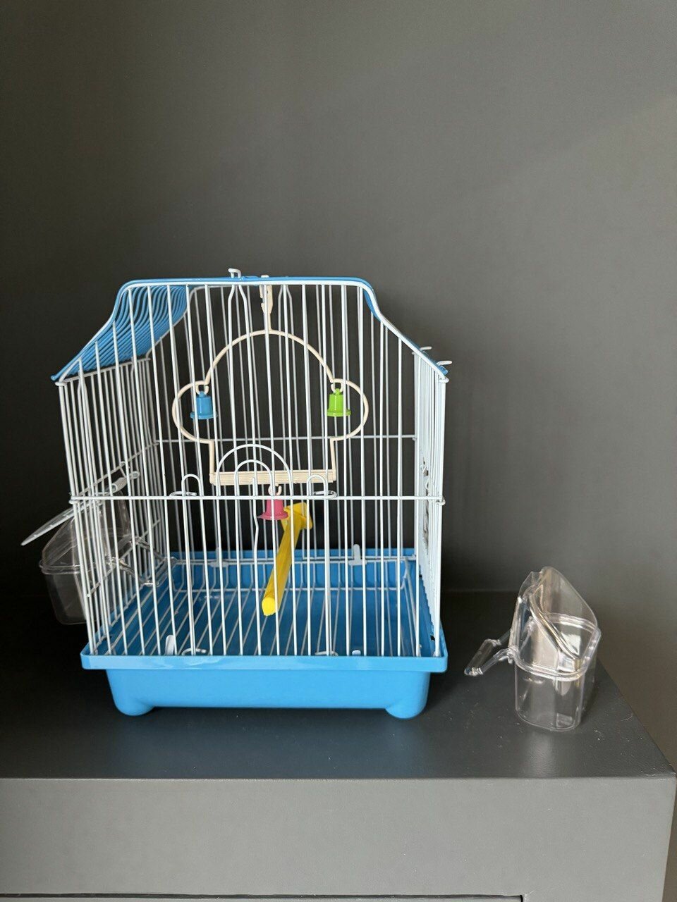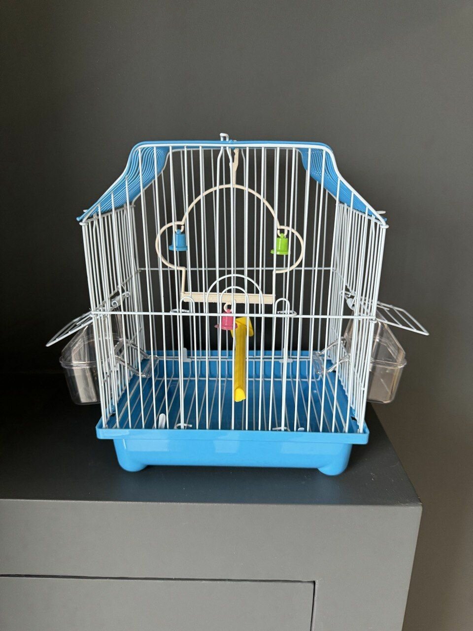 Клетка для птиц, 42х30х52 см., выдвижной поддон, фальшдно, поилки-кормушки, жердочки, качель, голубой