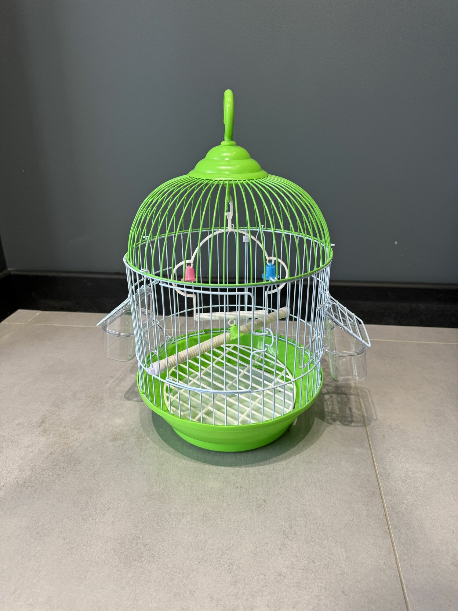 Клетка для птиц 22.5х17х28 см., фальшдно, две поилки-кормушки, жердочка, качели, зеленый