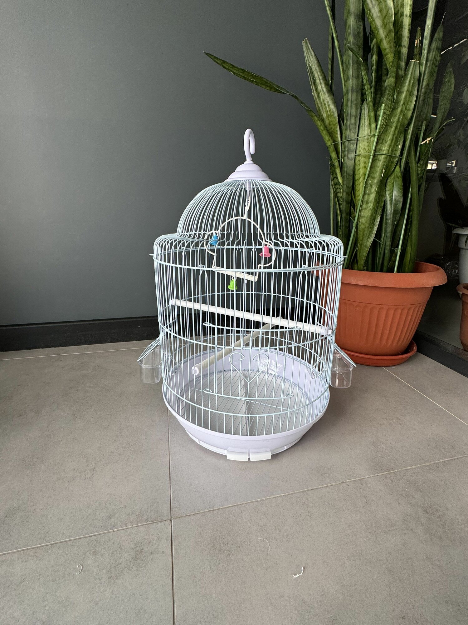 Клетка для птиц, 37х28х46 см., выдвижной поддон, фальшдно, поилки-кормушки, жердочки, качели, белый