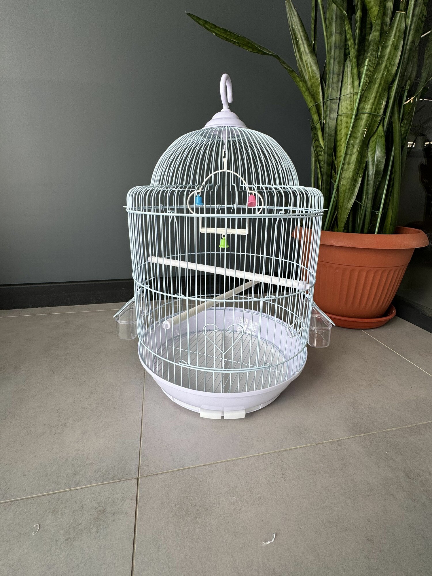 Клетка для птиц, 30х23х39 см, выдвижной поддон, фальшдно, поилки-кормушки, жердочки, качели, белый