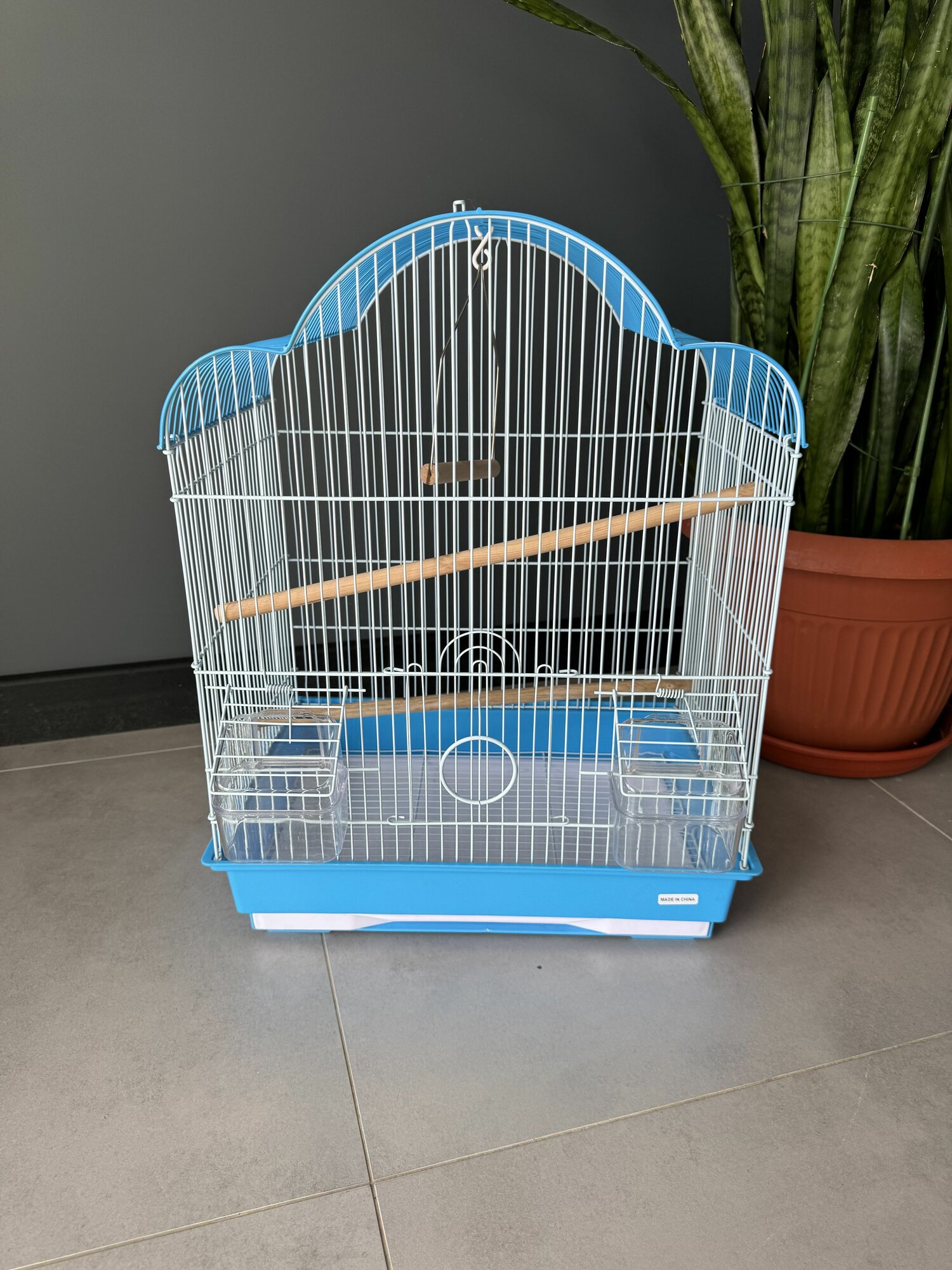 Клетка для птиц, 30х23х39 см., выдвижной поддон, фальшдно, поилки-кормушки, жердочки, качели, голубой
