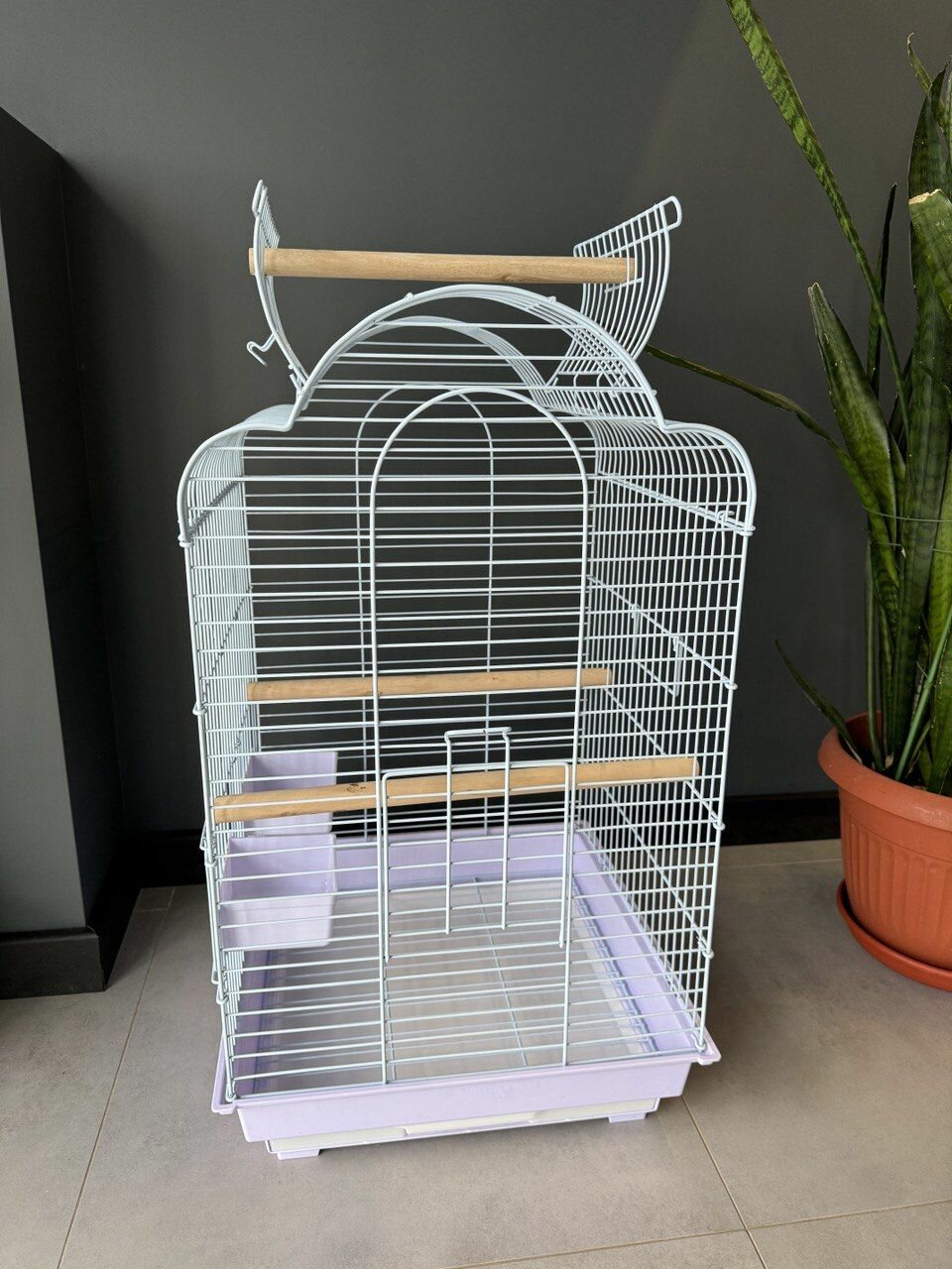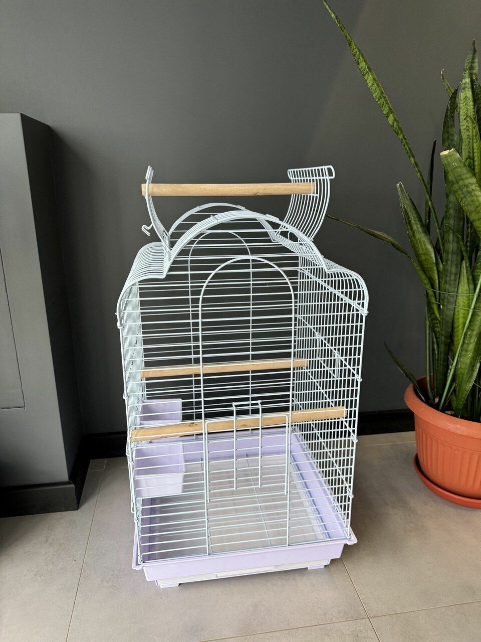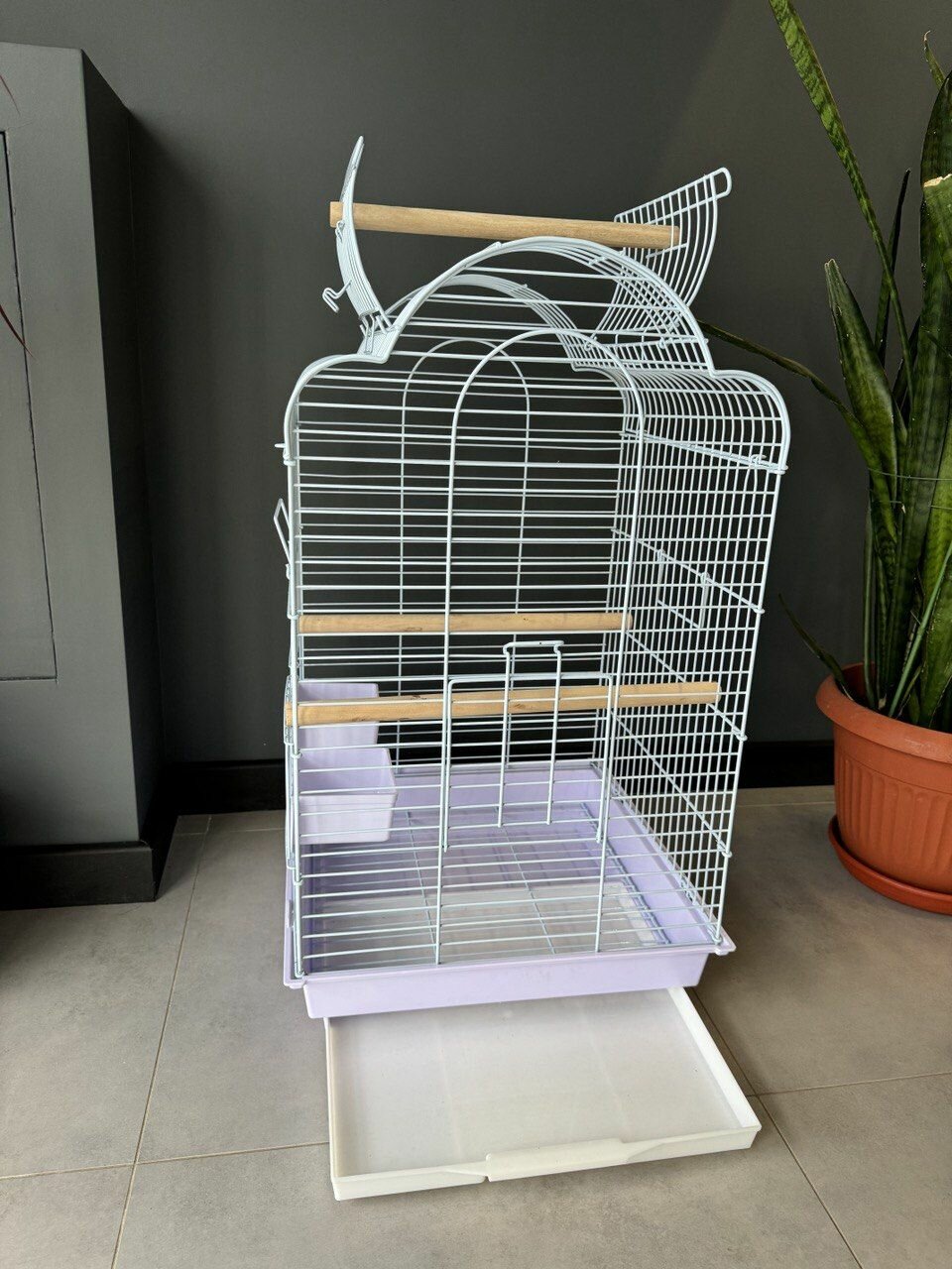 Клетка для птиц, 48х37х72.5 см., открывающийся верх, выдвижной поддон, фальшдно, поилки-кормушки, деревянные жердочки, белый