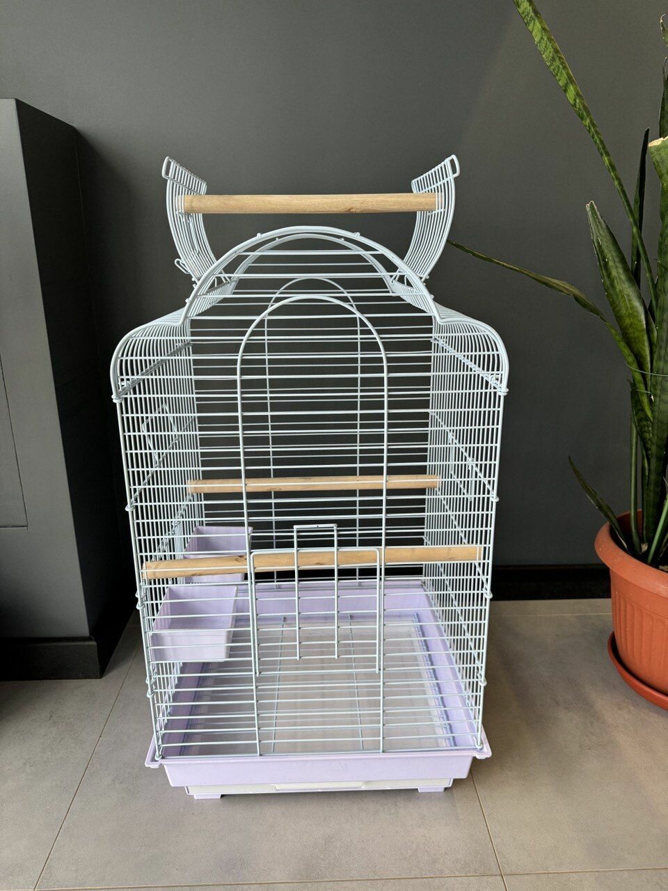 Клетка для птиц, 42х30х52 см., выдвижной поддон, фальшдно, поилки-кормушки, жердочки, качель, голубой