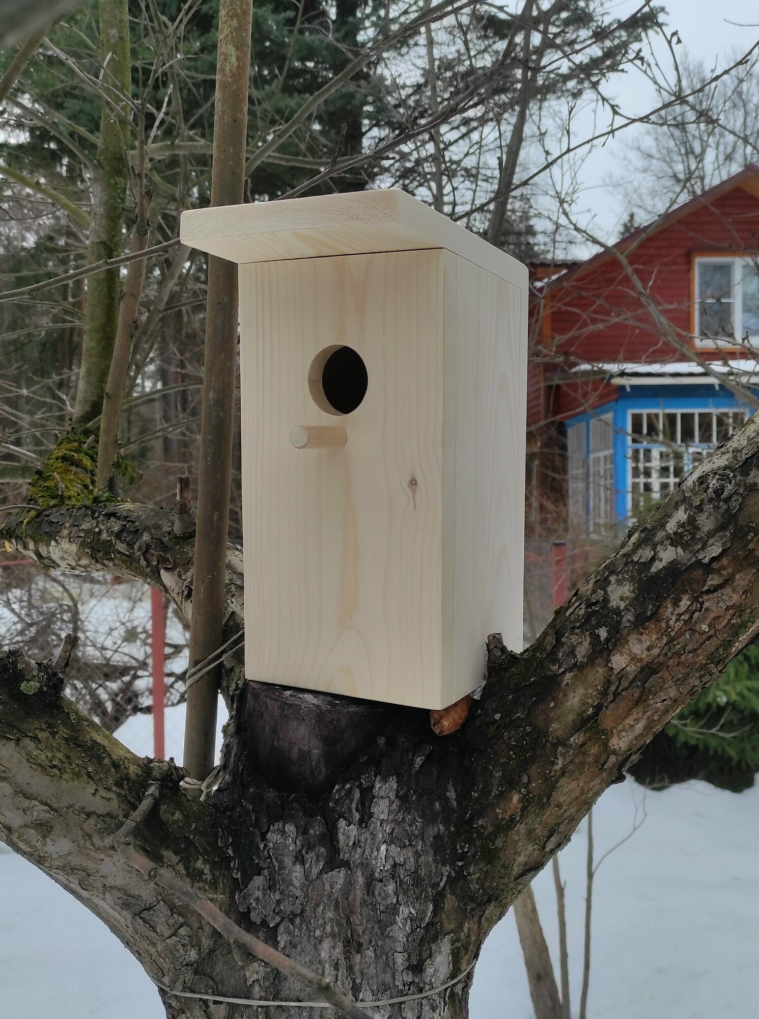 Скворечник "Клювик" из дерева в сборе / неокрашенный / Правильный Домик для птиц интересное: