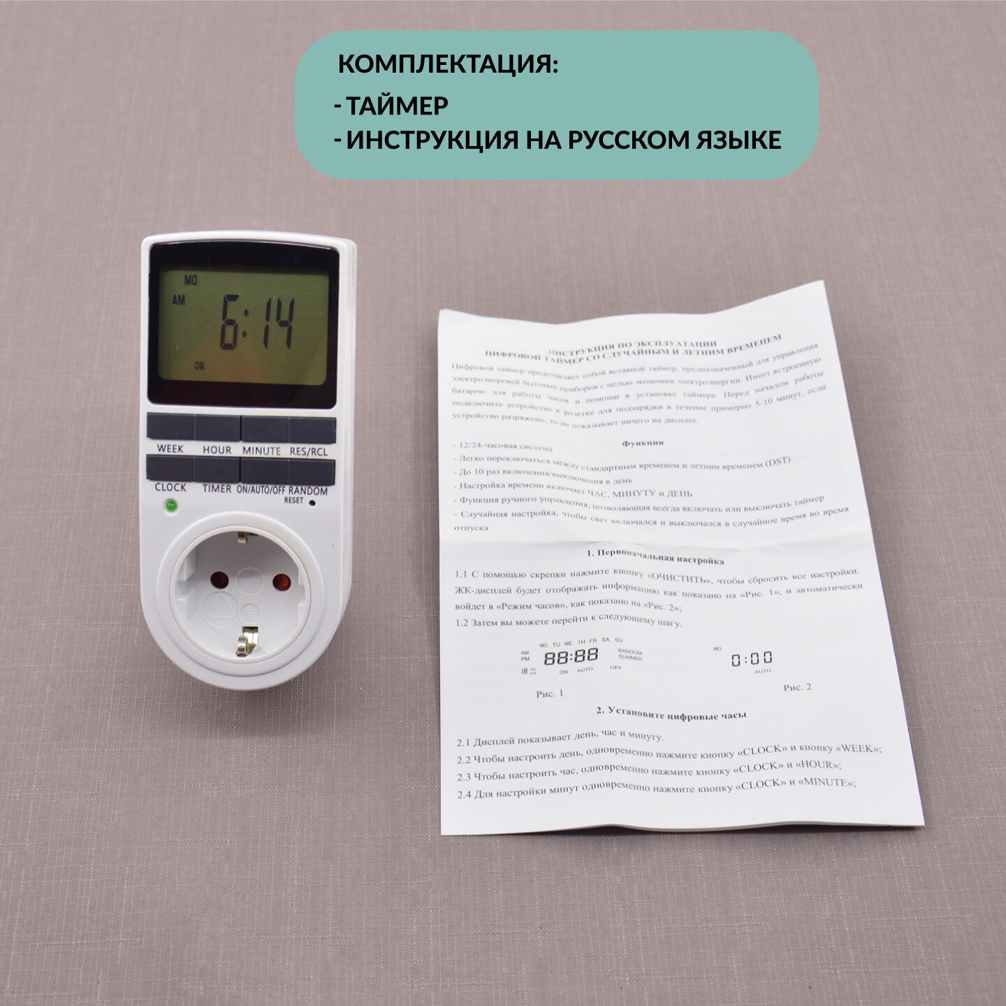 | Комплектация | Цифровая розетка-таймер - 1 шт. |