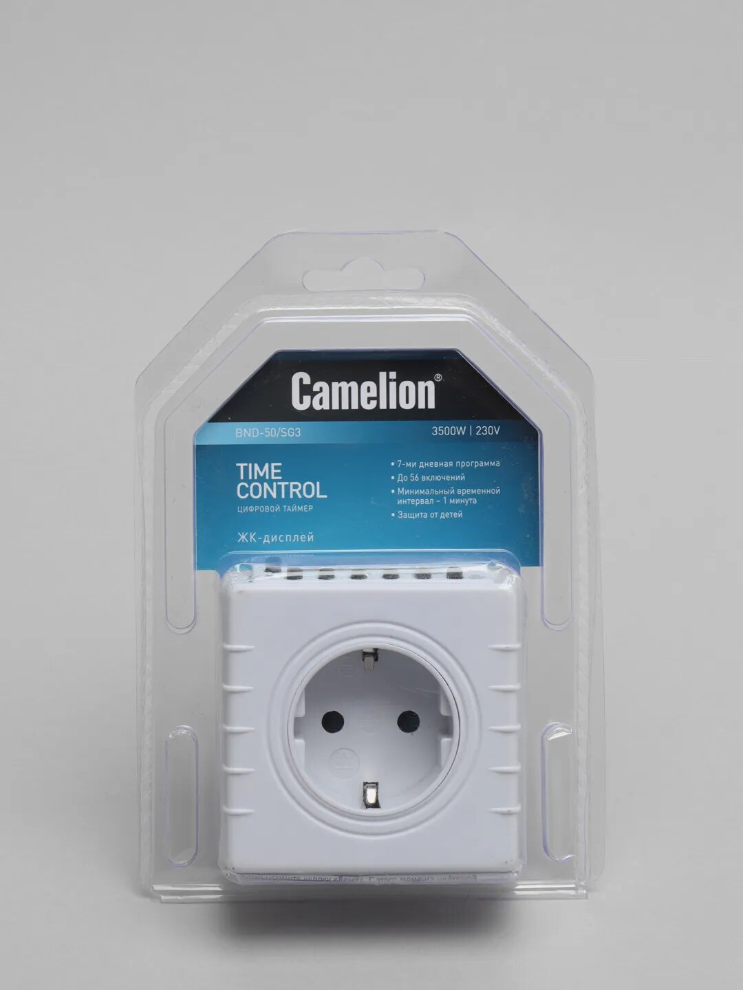Цифровой розеточный таймер, 7-дневная программа, 230/3500Вт Camelion BND-50/SG3