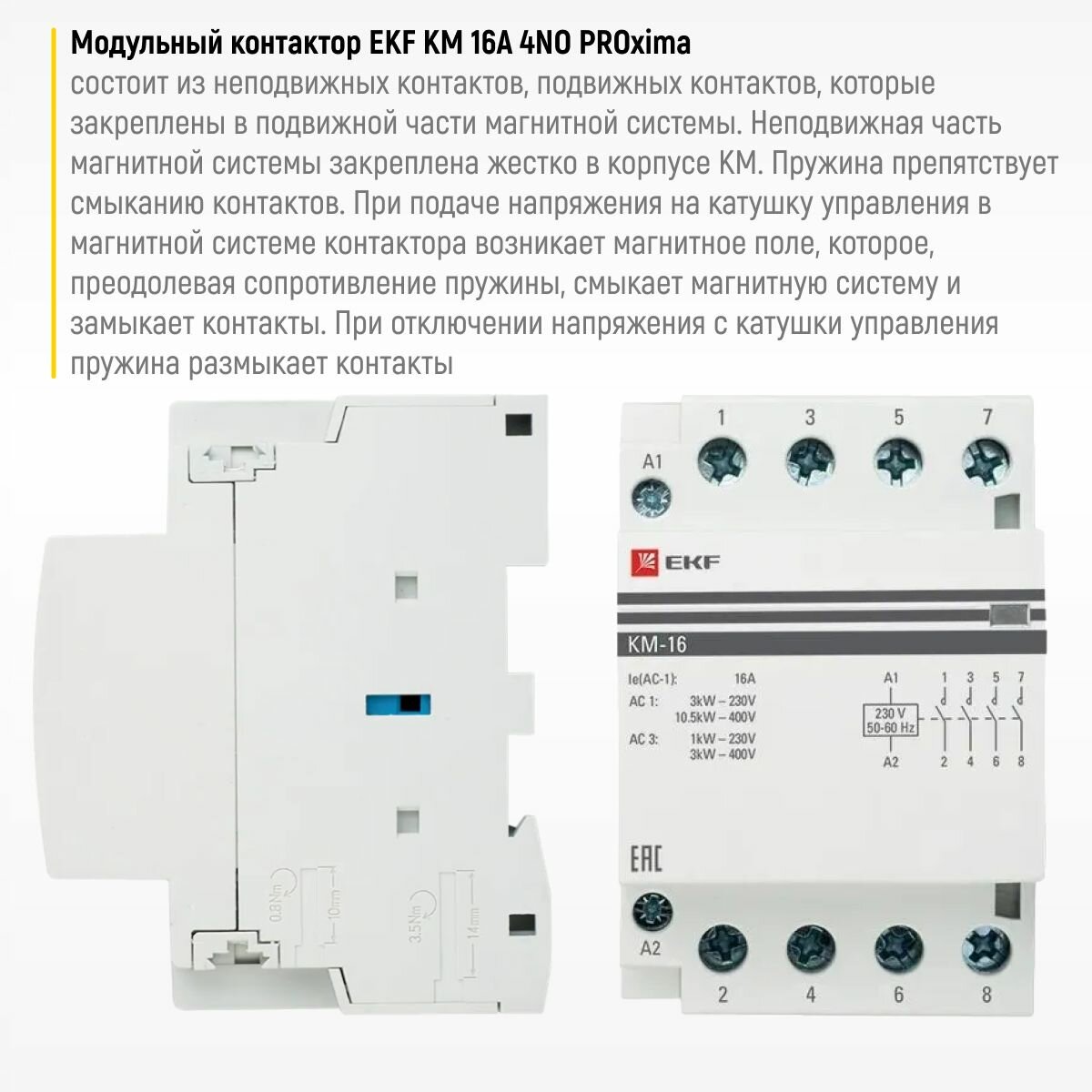 Контактор модульный КМ 16А 4NО (3 мод.) EKF PROxima интересное: