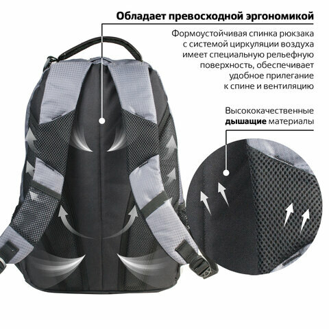Рюкзак Brauberg серый, Дельта, 33*18*49 см, 30 л (225293)