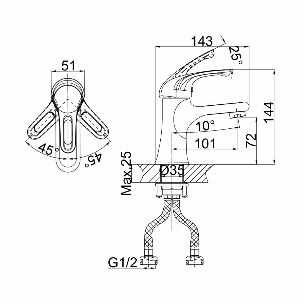 | Комплектация | смеситель - 1 шт., гибкая подводка - 2 шт., крепежная гайка - 1 шт., паспорт изделия - 1 шт., брендовая сумка - 1 шт. |