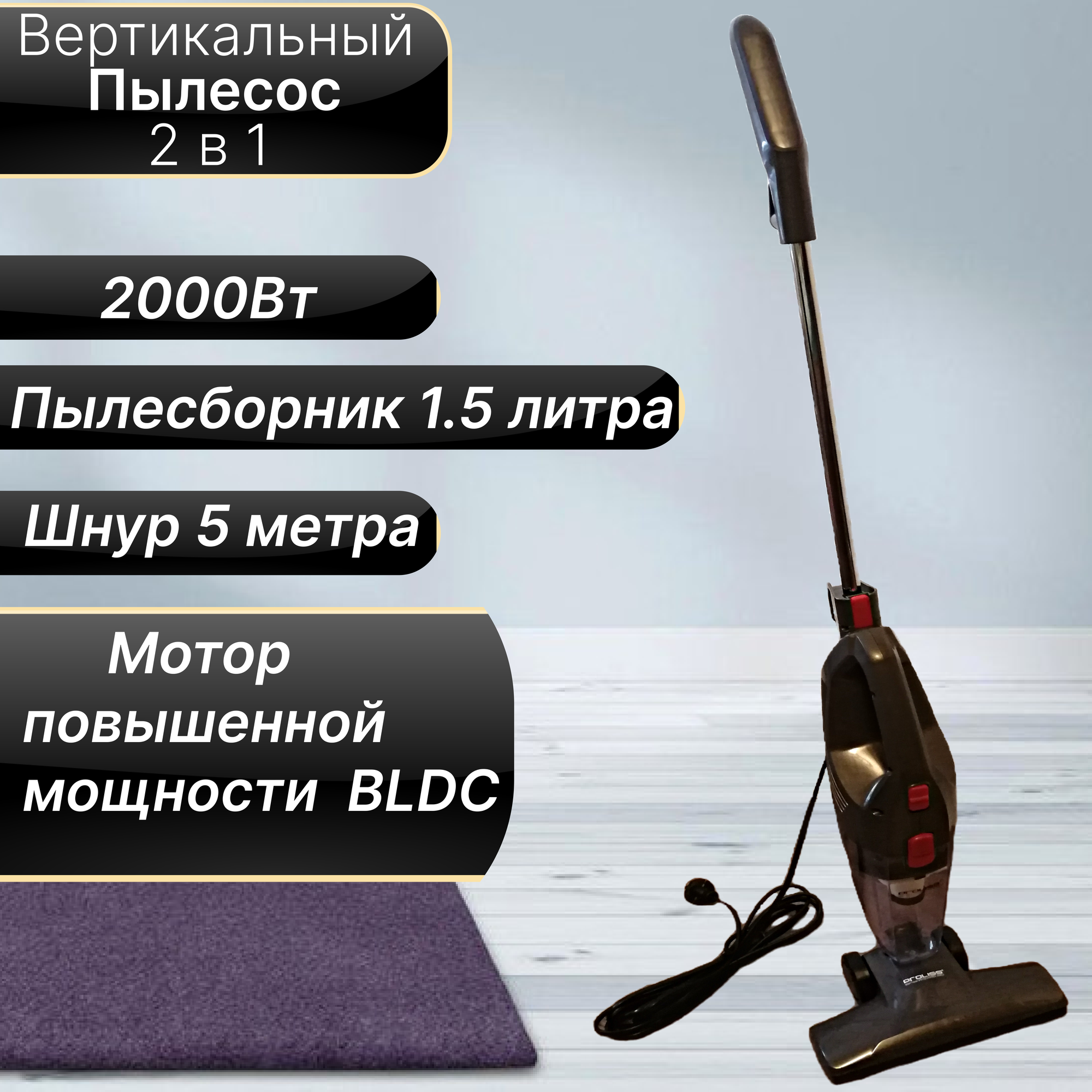 Пылесос вертикальный с HEPA фильтром моющим, 2 насадки для уборки пола, мощность 2000W, контейнер, серый интересное: