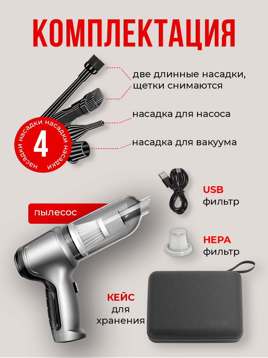 Пылесос автомобильный беспроводной Suitu ST-6645 в кейсе с аксессуарами интересное: