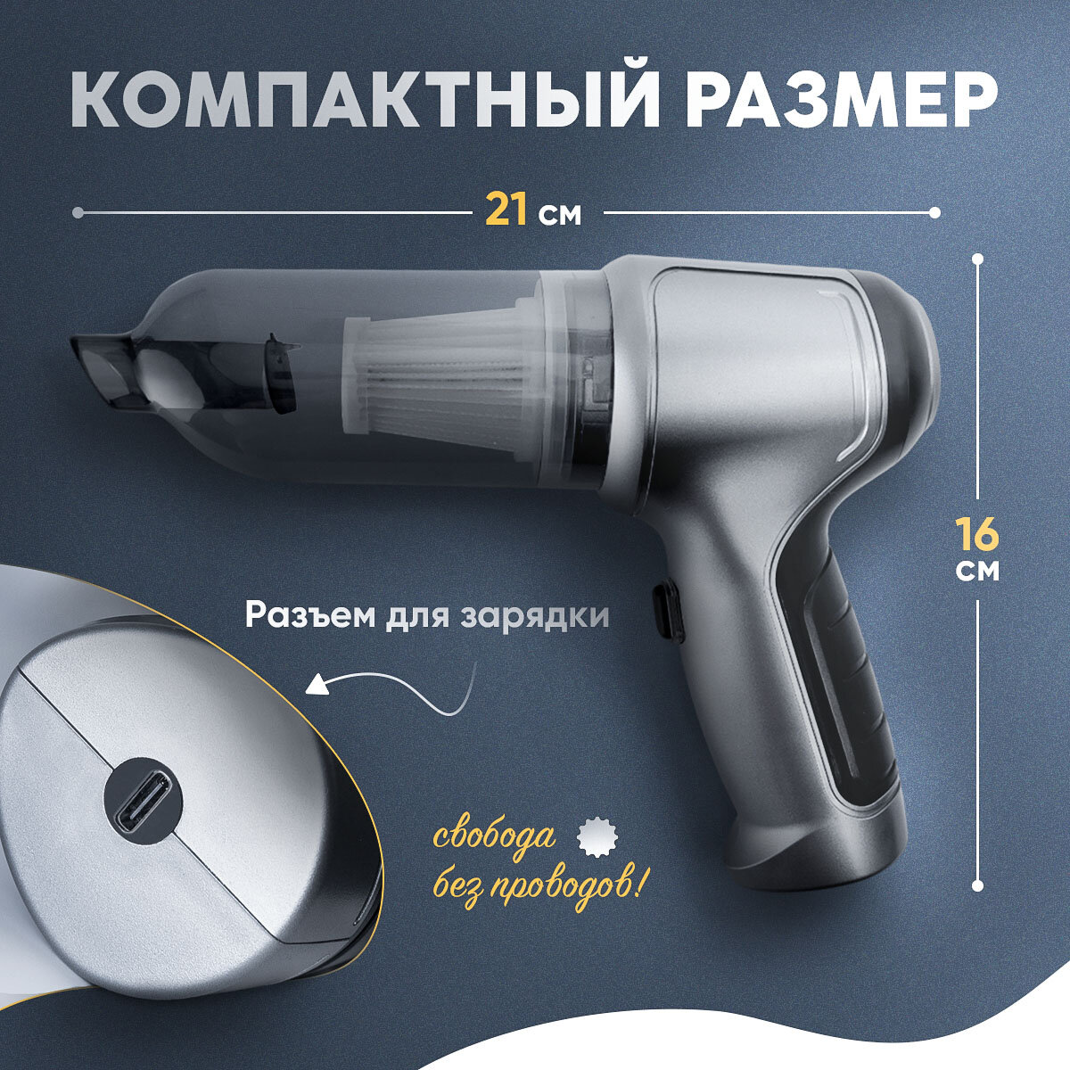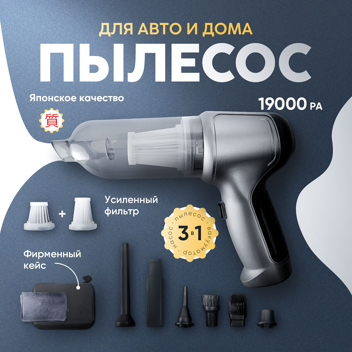Купить Пылесос для автомобиля беспроводной мощный с насадками 3 в 1