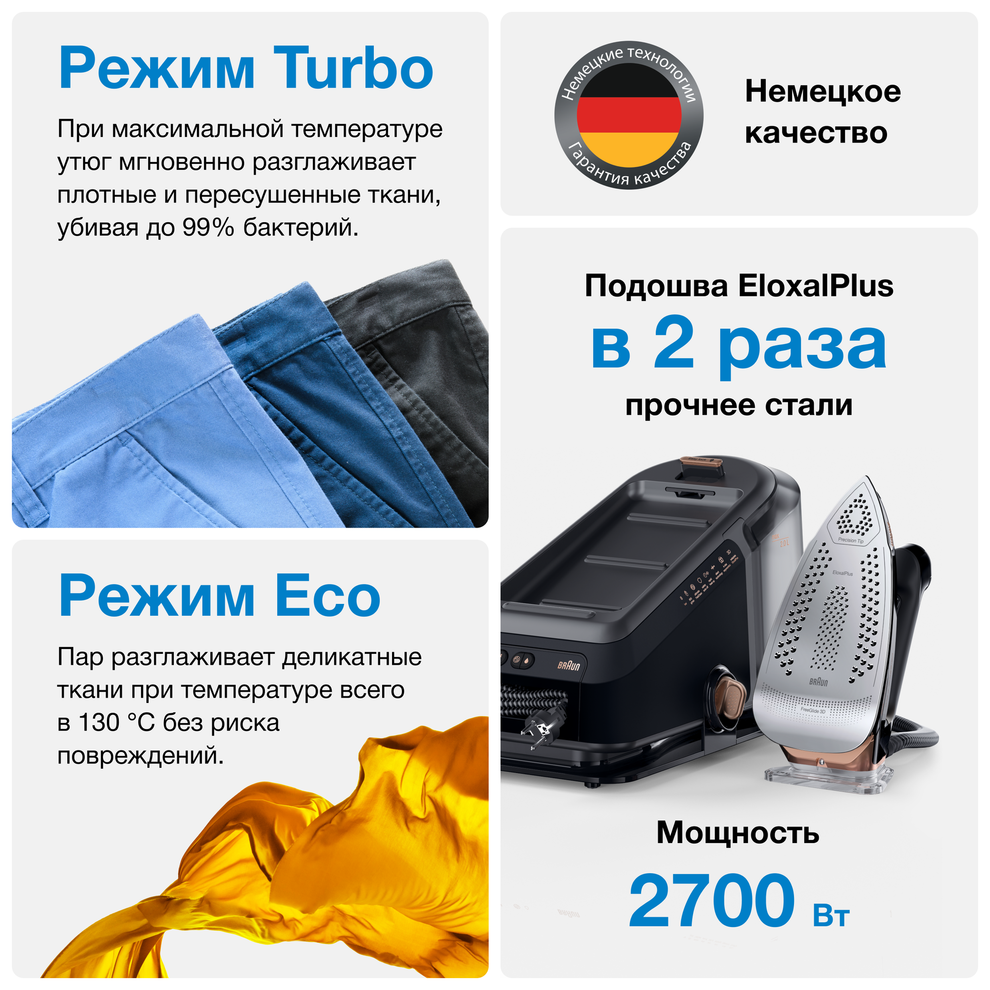 Парогенератор Braun CareStyle 7 Pro IS 7286 BK черный, Германия интересное: