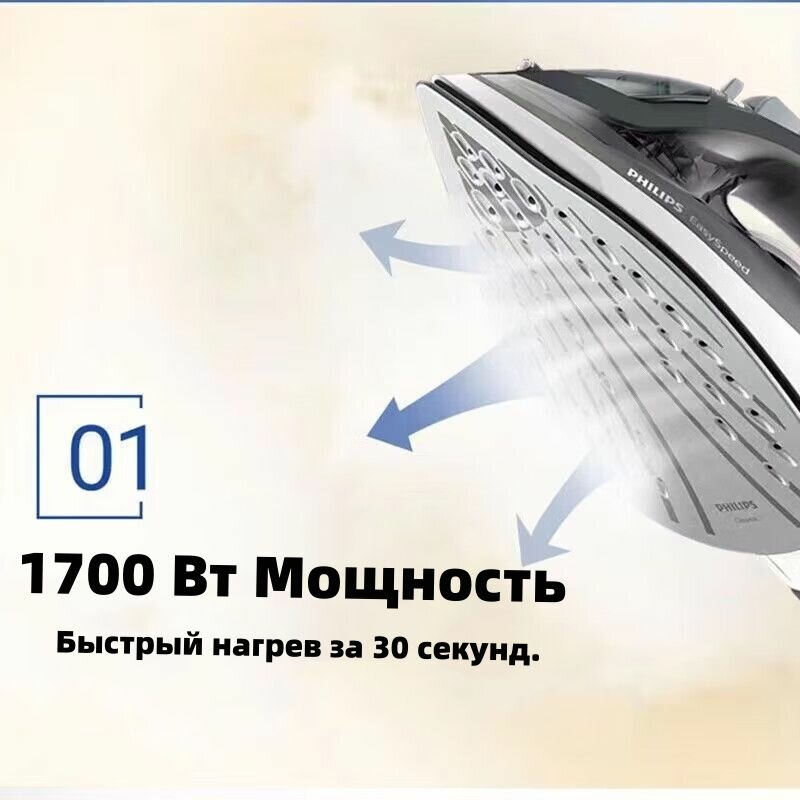 Паровой утюг Philips GC1758/88, большой резервуар для воды 220 мл, 1700 Вт, интеллектуальное автоматическое отключение CN интересное: