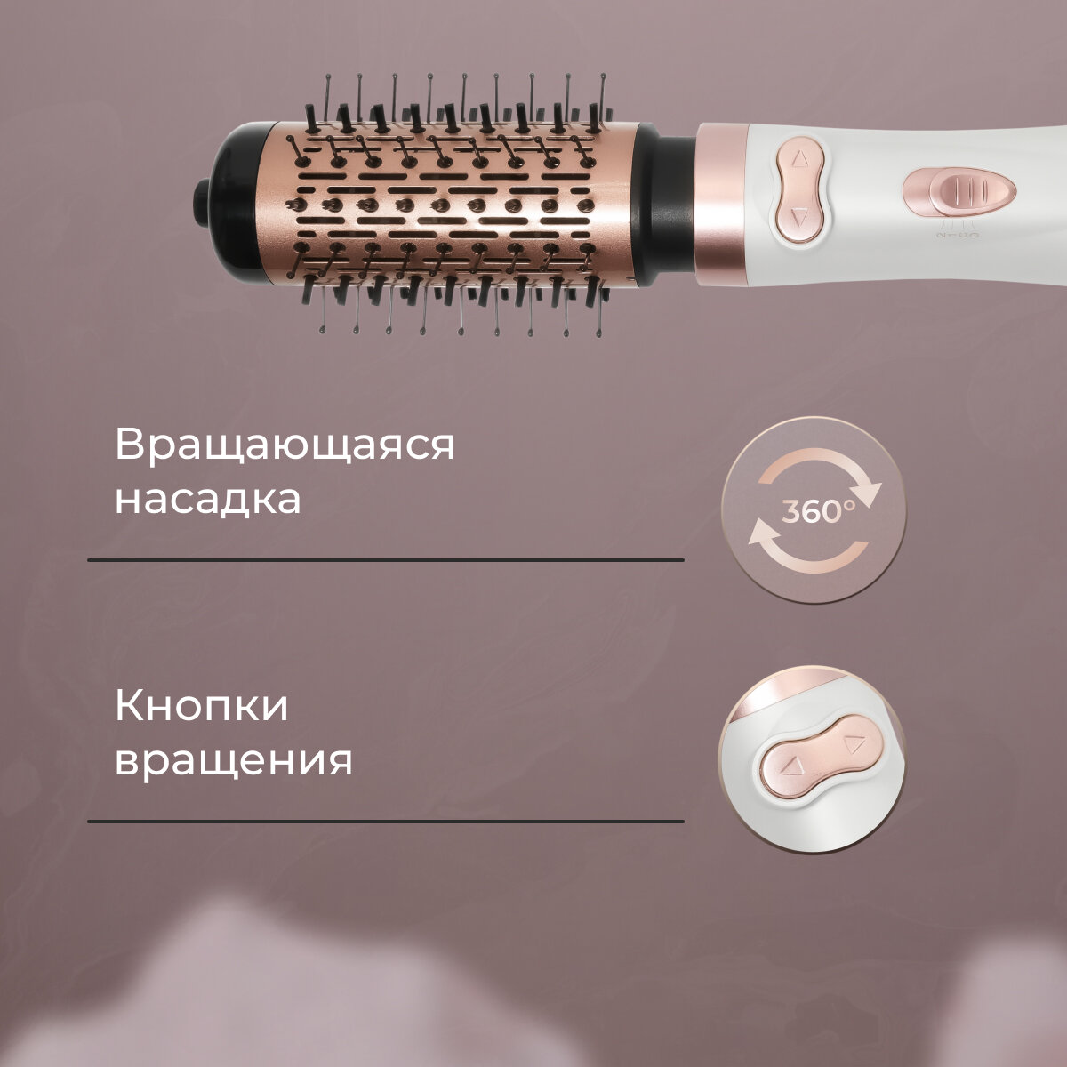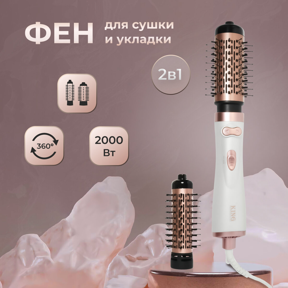 Фен-щетка стайлер для укладки волос с вращением King Professional kp-6005, белый/розовое золото