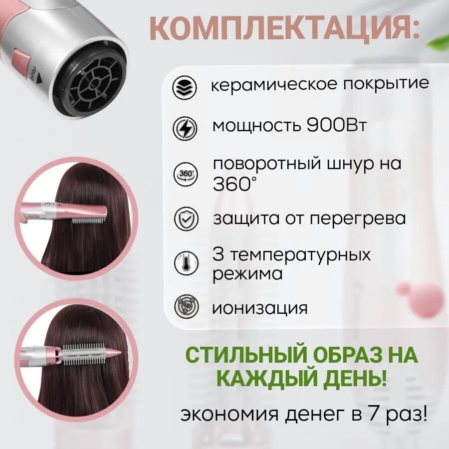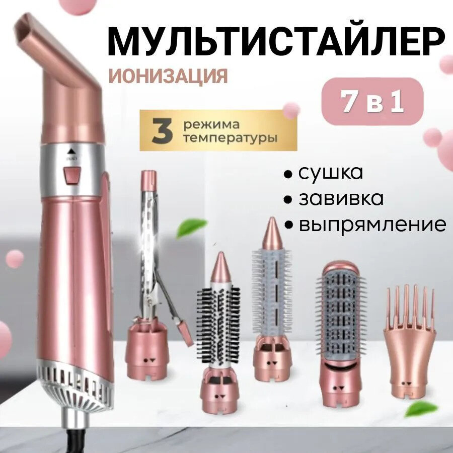 Фен-щетка для волос с ионизацией , Фен для волос, Стайлер 7 в 1 , выпрямитель, плойка для завивки, концентратор интересное: